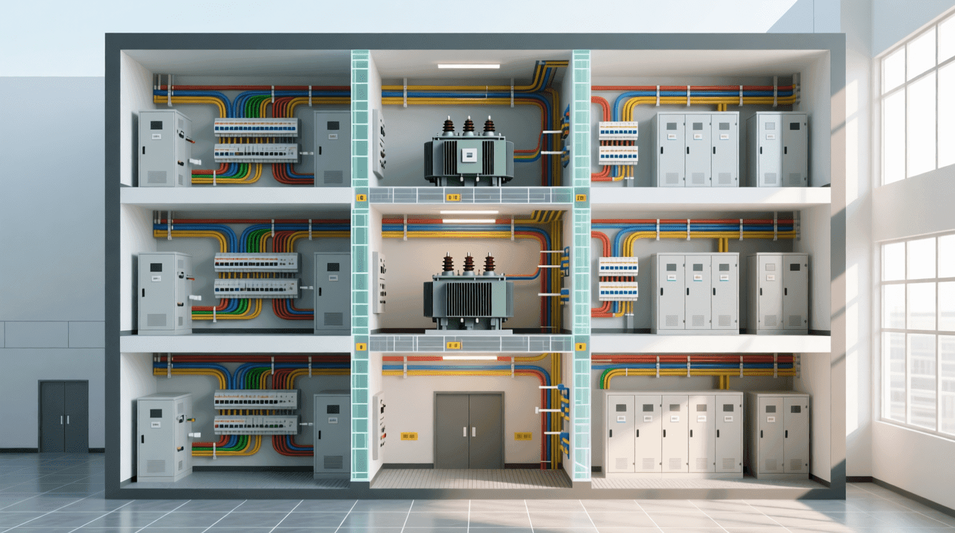 每栋大型建筑都需要一个电力“心脏”——变配电系统。电力公司输送过来的电压很高,通常是10千伏或35千伏,这个电压没法直接使用。变配电室的作用就是把高压电降低到建筑内部可用的电压。