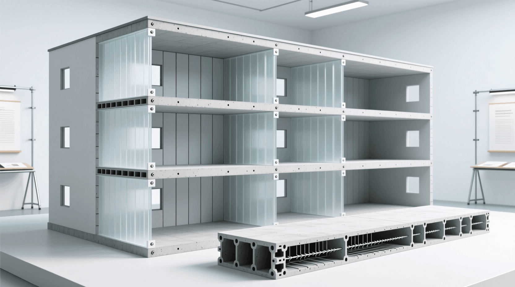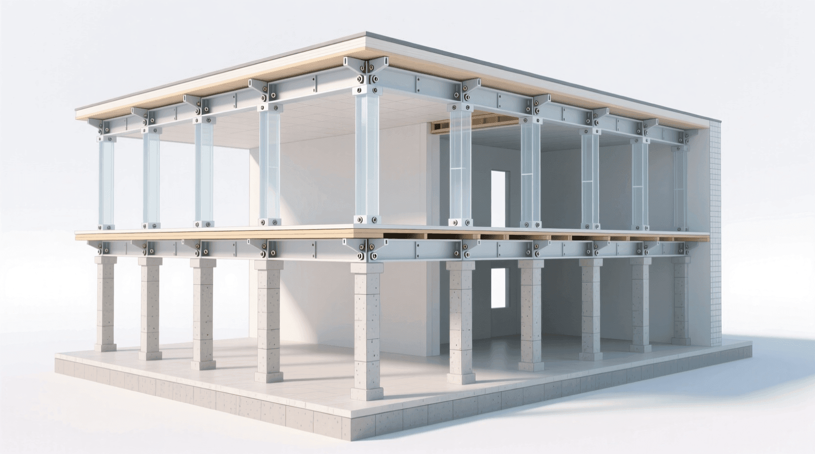 柱板系统是柱梁系统的“精简版”——它省去了梁,让楼板直接搭在柱子上。