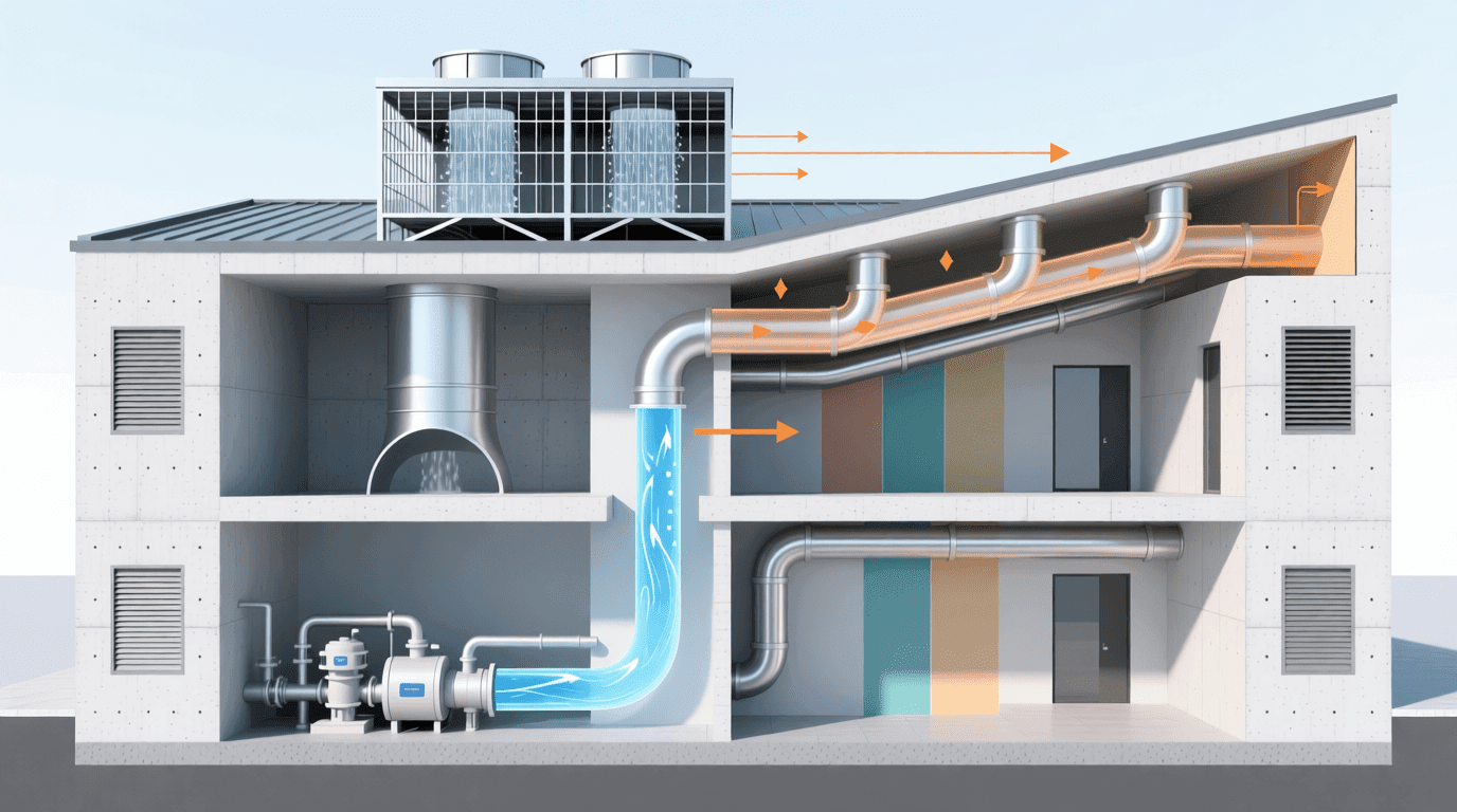 强制空气循环系统是一种通过风机和风管网络输送温度调节后空气的方案。这种系统在商业建筑和大型住宅中应用广泛。