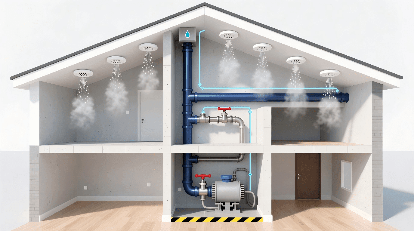 南京某30层住宅采用了这种方案。每户客厅、卧室顶部安装一个喷头,连接到户内给水管。喷头采用快速响应型,温度达到68℃时5-10秒内开始喷水。虽然水量不如商业建筑的喷淋系统大,但对于住宅火灾的初期控制已经足够。