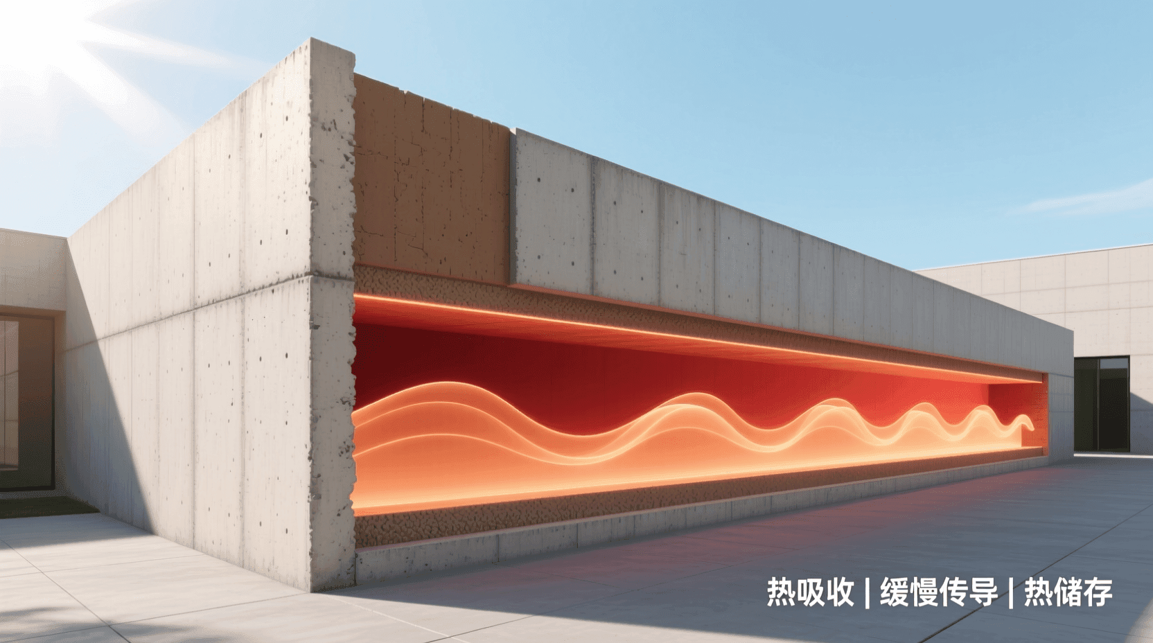 例如,一块厚重的混凝土墙体,白天室外温度升高,墙体开始从外表面吸收热量,但由于混凝土导热系数不高,热量向内部传递的速度很慢。等到墙体内表面温度明显升高时,往往已经到了傍晚,这时室外温度开始下降。到了夜间,墙体反而成为热源,向室内空气释放白天储存的热量,但因为总体温度波动被削减,室内温度峰值得以降低。