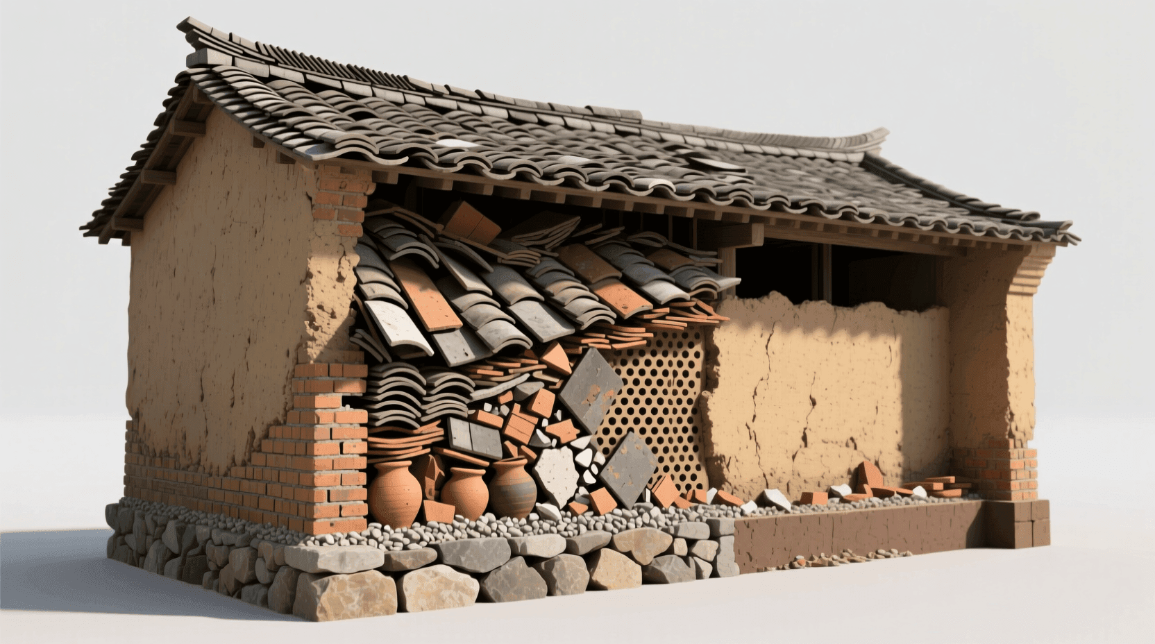 建筑师王澍在设计宁波博物馆时,从江南传统建筑中提取了“瓦爿墙”这个元素。瓦爿墙是用废弃的瓦片和砖石混合砌筑的墙体,原本是普通民居的经济做法。王澍将这个传统构造方法转译到大型公共建筑上,但做了重要的调整:墙体的结构由现代混凝土承担,瓦片和砖石成为表层的装饰和文化表达;墙体的尺度被放大,以匹配博物馆的体量;砖石的排列不再是随机的,而是经过精心设计,形成有节奏的图案。