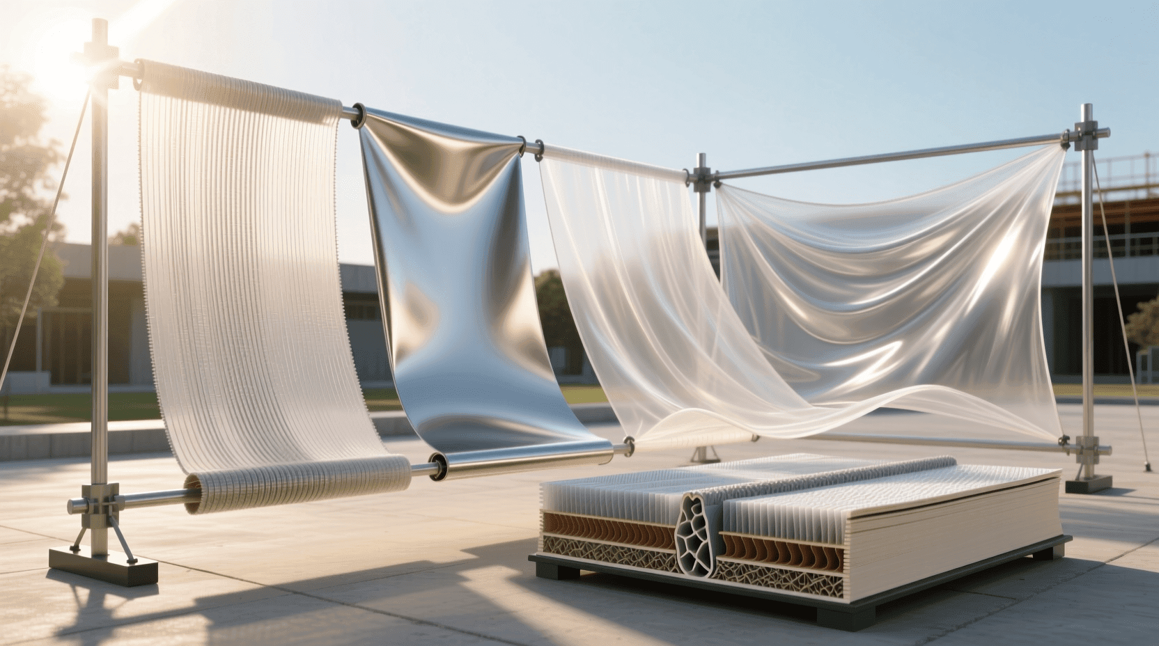 建筑膜材主要有三种:PTFE膜、PVC膜和ETFE膜。它们各有特点,适用于不同的场合。