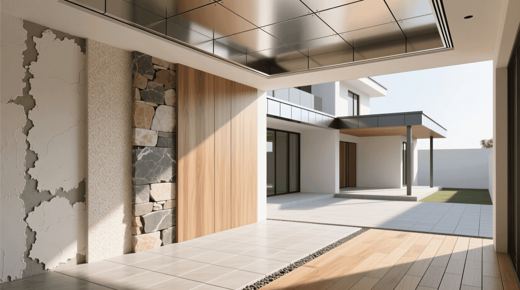 美学协调性要求装饰材料在色彩、质感、纹理、尺度等方面与建筑整体风格相协调。现代简约风格适合选用色彩纯净、线条简洁的材料,如纯色瓷砖、金属材料、简约木饰面等。中式风格适合选用具有传统文化元素的材料,如木材、石材、青砖等。欧式风格倾向于使用天然石材、精致的线脚、华丽的吊顶等。材料之间的搭配也需要注意主次关系和对比协调,避免过于繁杂或单调。