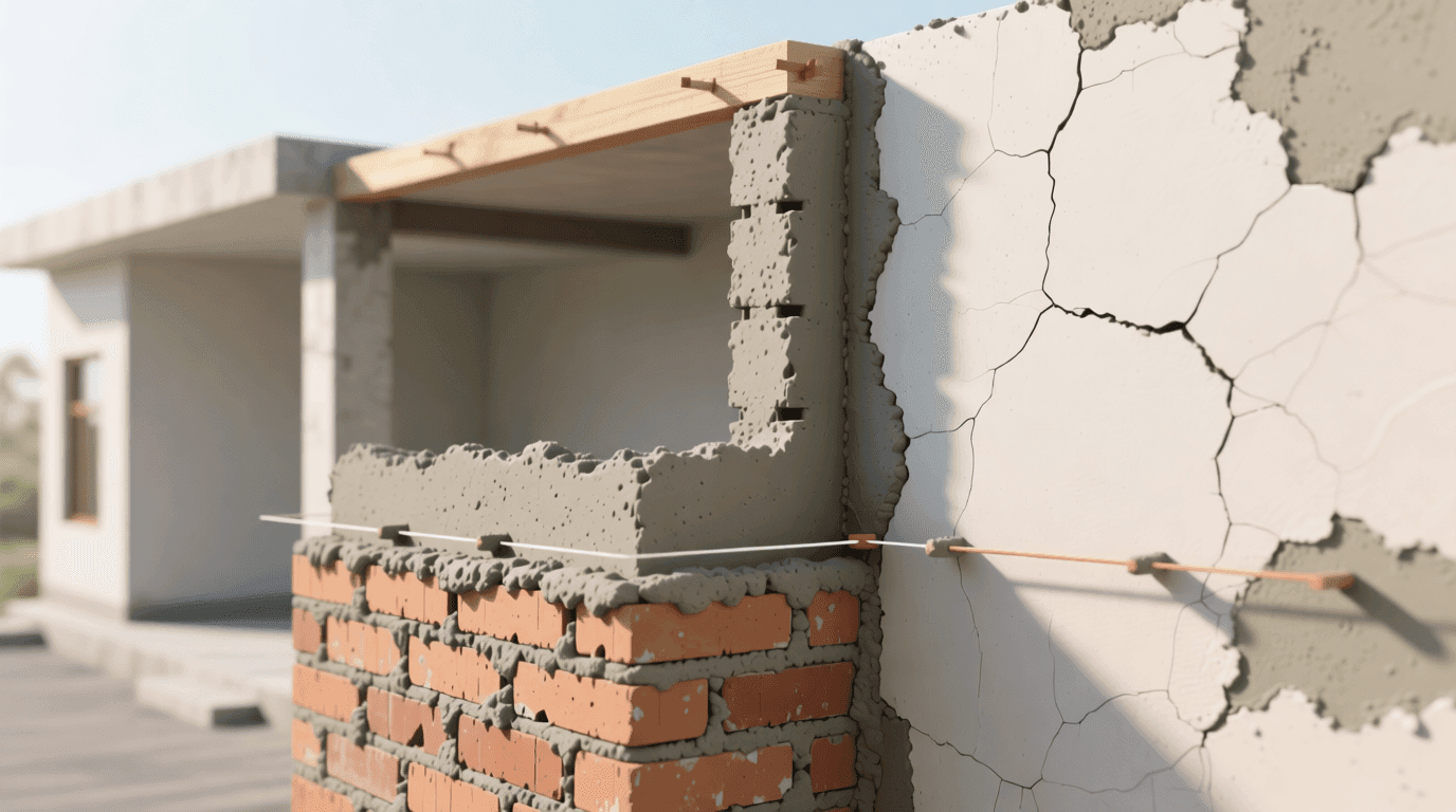 施工操作应按规范进行。砌筑时砂浆应铺满,砂浆饱满度不低于80%。水平灰缝厚度宜为8至12毫米,竖向灰缝宽度宜为8至12毫米。抹灰应分层进行,每层厚度不宜超过10毫米,待前一层砂浆凝结后再抹下一层。