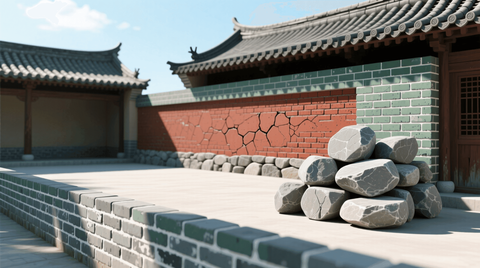 北方地区的四合院建筑,围墙和房屋墙体也主要使用青砖砌筑。砌筑方式讲究,有多种砌法,如一顺一丁、三顺一丁、梅花丁等。不同的砌法不仅影响墙体的强度,也形成不同的外观效果。墙体的勒脚部分常用石材砌筑,防止地面潮气上升侵蚀墙体。