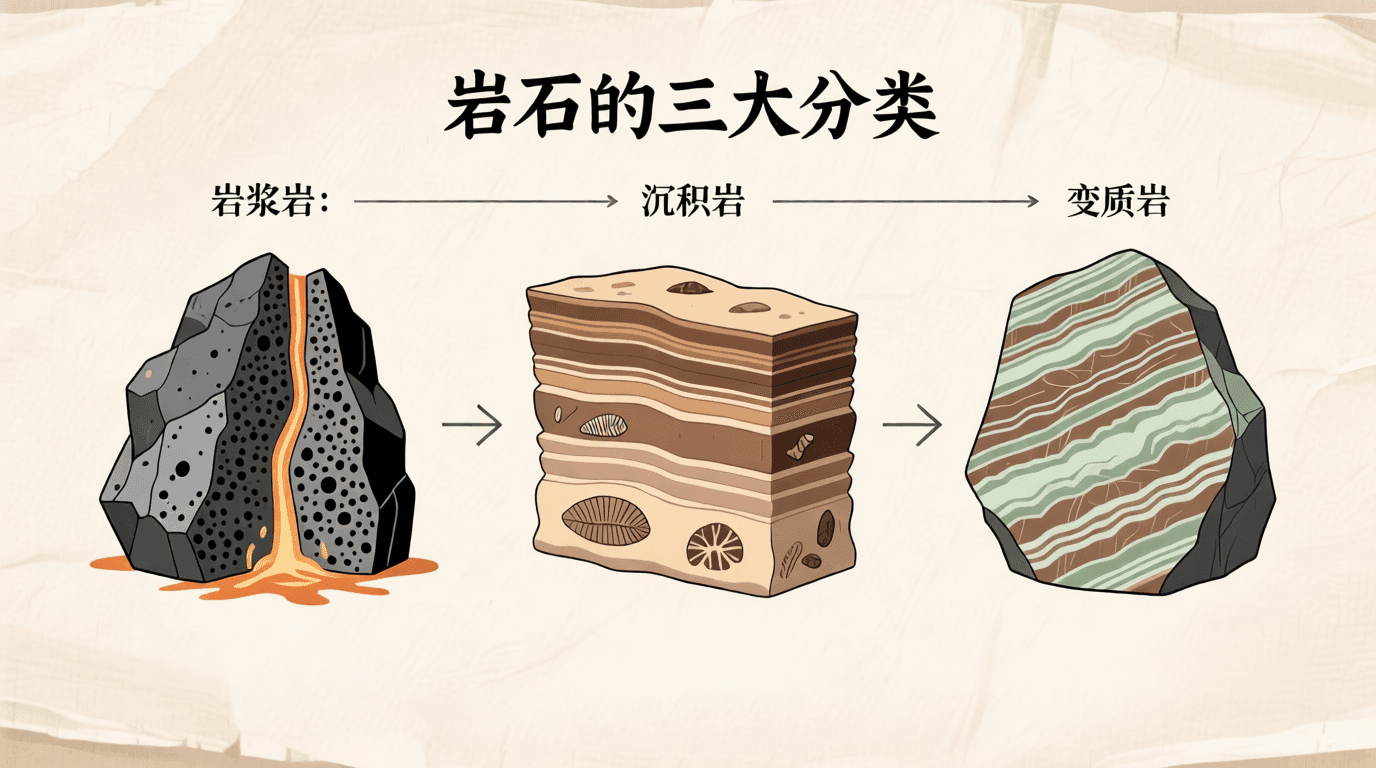 石材是人类最早使用的建筑材料之一,具有坚固耐久、天然美观的特点。建筑石材来源于天然岩石,岩石是由一种或多种矿物组成的固体集合体。根据成因的不同,岩石可以分为岩浆岩、沉积岩和变质岩三大类。