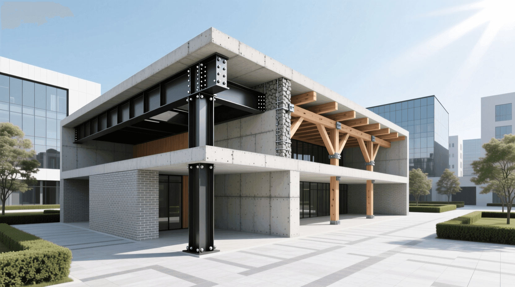 高层和超高层建筑也越来越多地采用钢结构或钢-混凝土混合结构。纯钢结构可以大幅减轻建筑自重,降低地震作用;钢-混凝土组合结构则结合了两种材料的优势,在核心筒部位使用钢筋混凝土提供刚度,外围采用钢框架提供强度和施工便利性。
