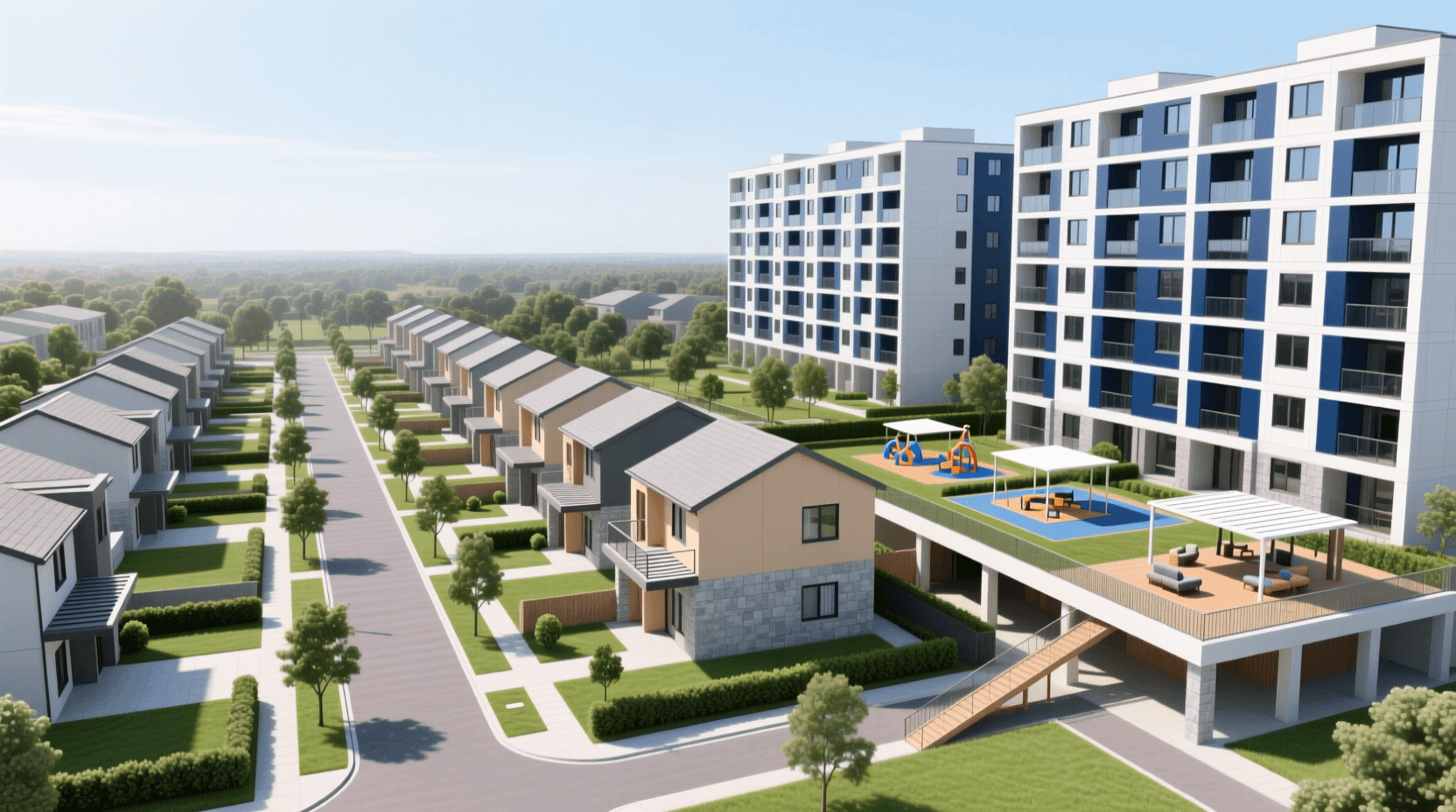 独立式住宅通常指别墅,拥有独立的庭院和完整的私密空间,居住品质高,但占地面积大,开发成本和售价较高,主要面向高收入群体。联排式住宅介于独立别墅和多层公寓之间,多户住宅并列布置,各户拥有独立出入口和小型庭院,兼顾了私密性和土地利用效率,在欧美国家较为常见。