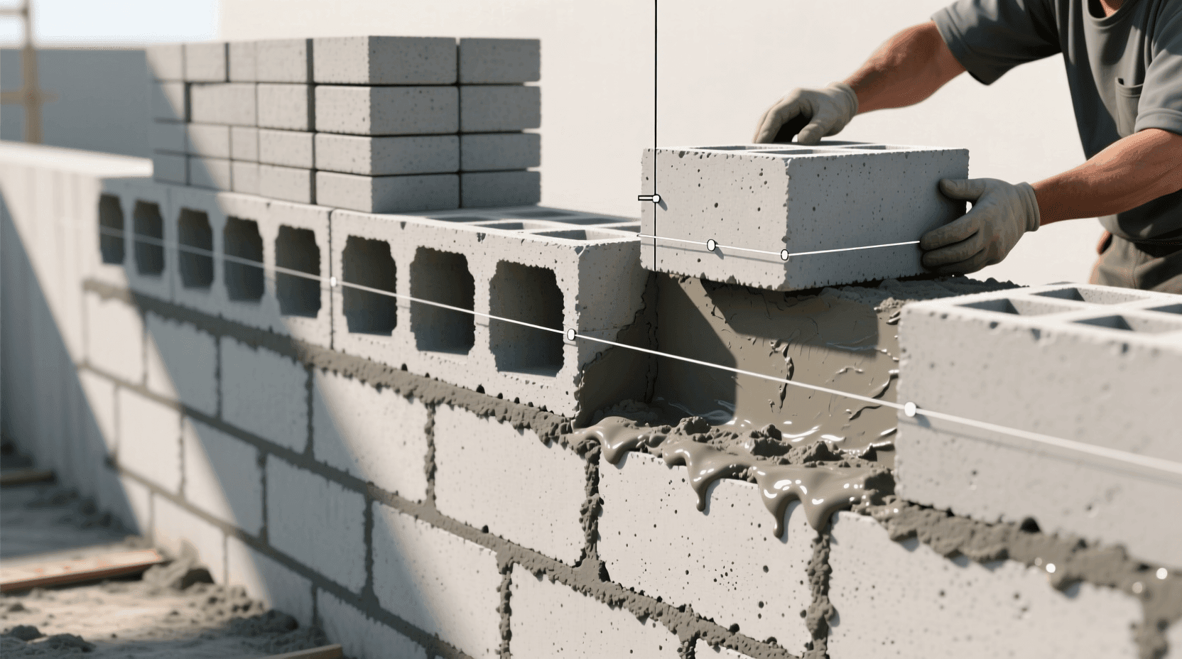 砌体应分层砌筑,每天砌筑高度不宜超过1.8米。砌筑高度过大,砂浆流淌变形,影响砌体的质量和安全。砌筑过程中应随时检查墙体的垂直度和平整度,及时纠正偏差。