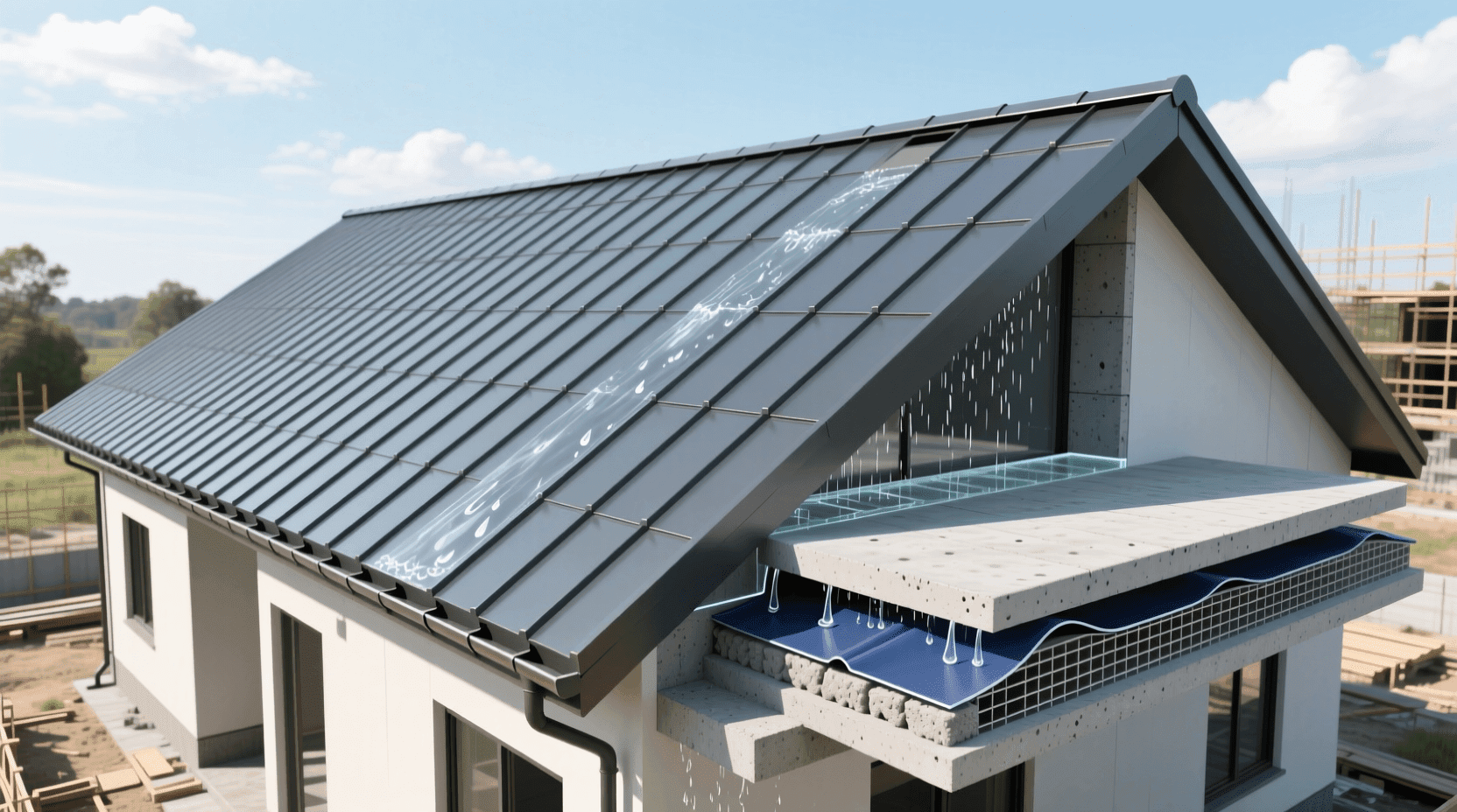 从表中可以看出,坡度要求与材料的防水机理直接相关。瓦片类材料依靠重叠搭接防水,需要较大坡度来确保雨水快速流走,不会从搭接缝隙渗入。而卷材类材料通过整体粘结形成连续防水层,对坡度要求较低。