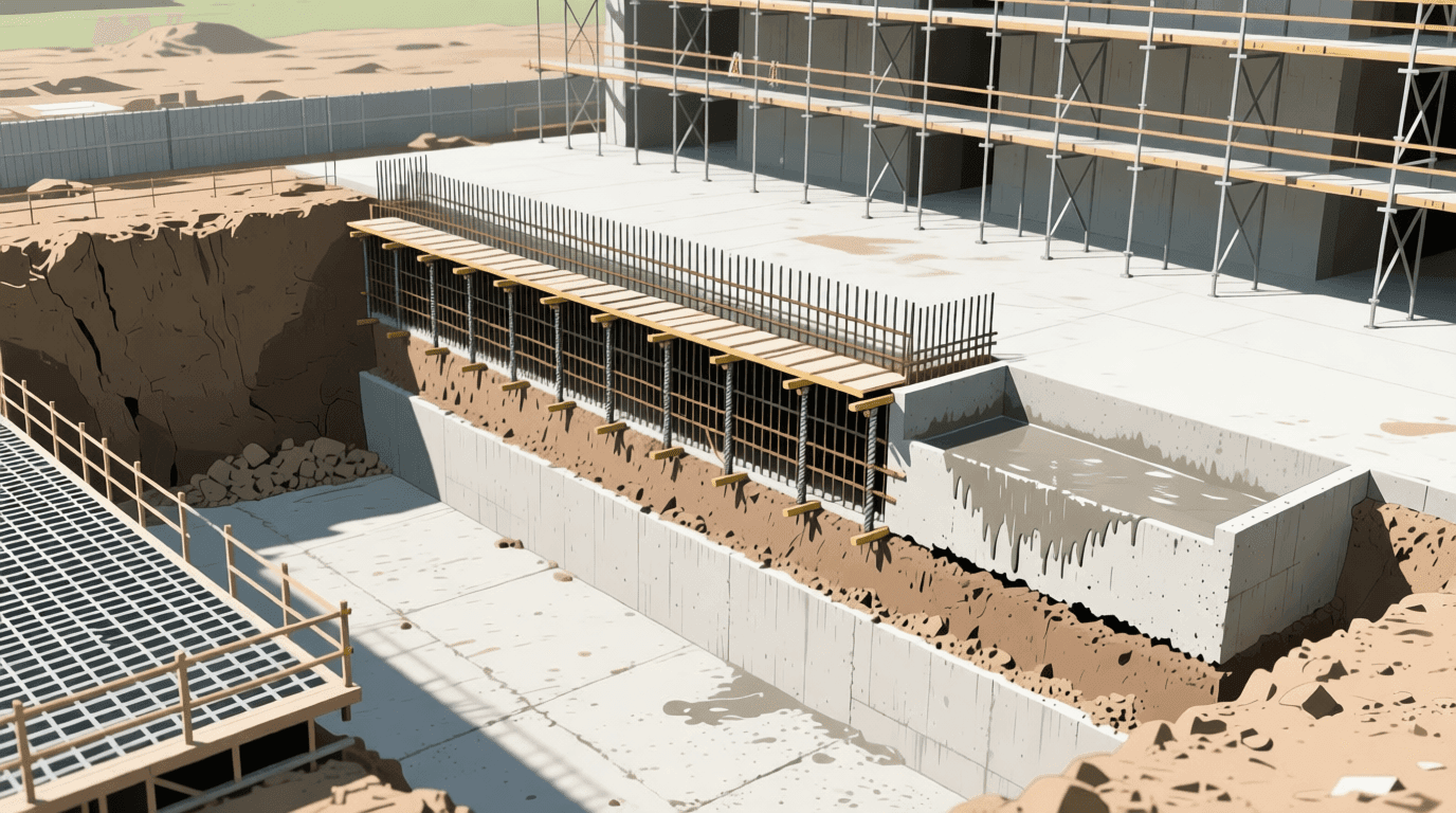 对于深度超过5米的基坑开挖,通常需要设置支护结构。支护结构的形式包括土钉墙、排桩加内支撑、地下连续墙等。方案的选择取决于基坑深度、周边环境保护要求、场地土质条件等因素。北京某高层住宅项目采用了钻孔灌注桩加钢支撑的支护方案,有效保护了基坑周边仅3米距离的既有建筑。