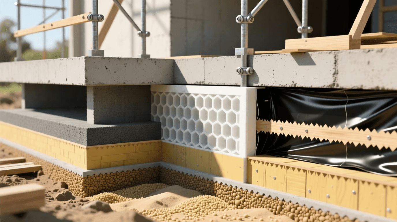 保温层的铺设位置有两种做法:一种是垂直保温,将保温板贴在基础外侧面;另一种是水平保温,将保温板铺设在基础周边的地面以下。两种做法各有优缺点,垂直保温的保温效果更好,但施工较为复杂;水平保温施工简便,但需要的保温材料较多。