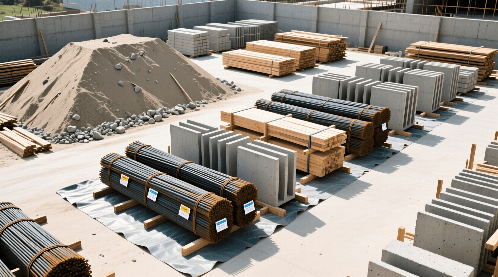 建筑材料种类繁多,不同材料对存放条件的要求各不相同。水泥等胶凝材料怕潮湿,必须存放在防潮性能良好的仓库内,离地高度不小于300毫米,距离墙面不小于200毫米。钢材露天堆放时需要垫高离地,防止锈蚀,不同规格的钢材应分类存放,便于使用和管理。