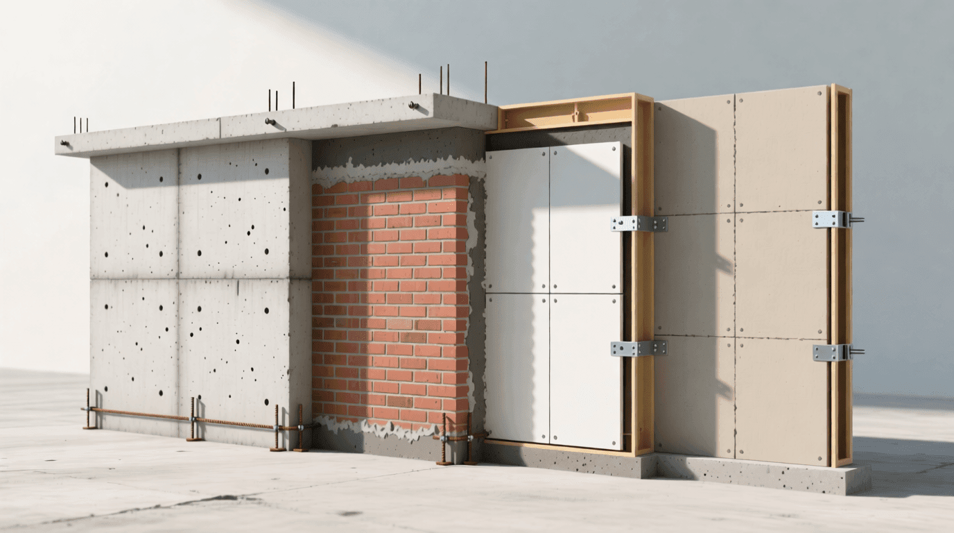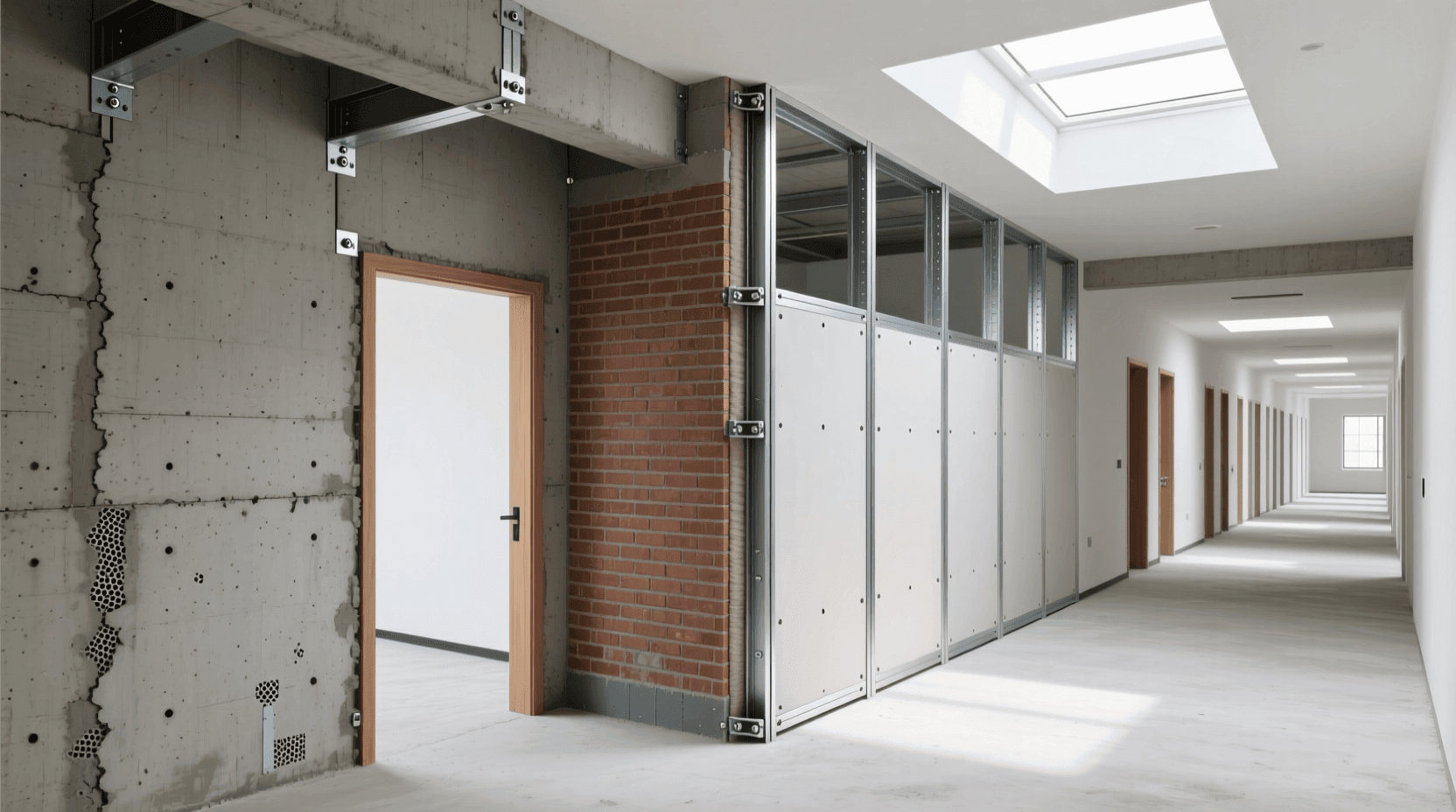 轻质隔墙具有自重轻、施工快、可灵活拆改等优点,在现代建筑中应用越来越广泛。常用的轻质隔墙包括轻钢龙骨石膏板隔墙、加气混凝土砌块隔墙、GRC轻质隔墙板等。