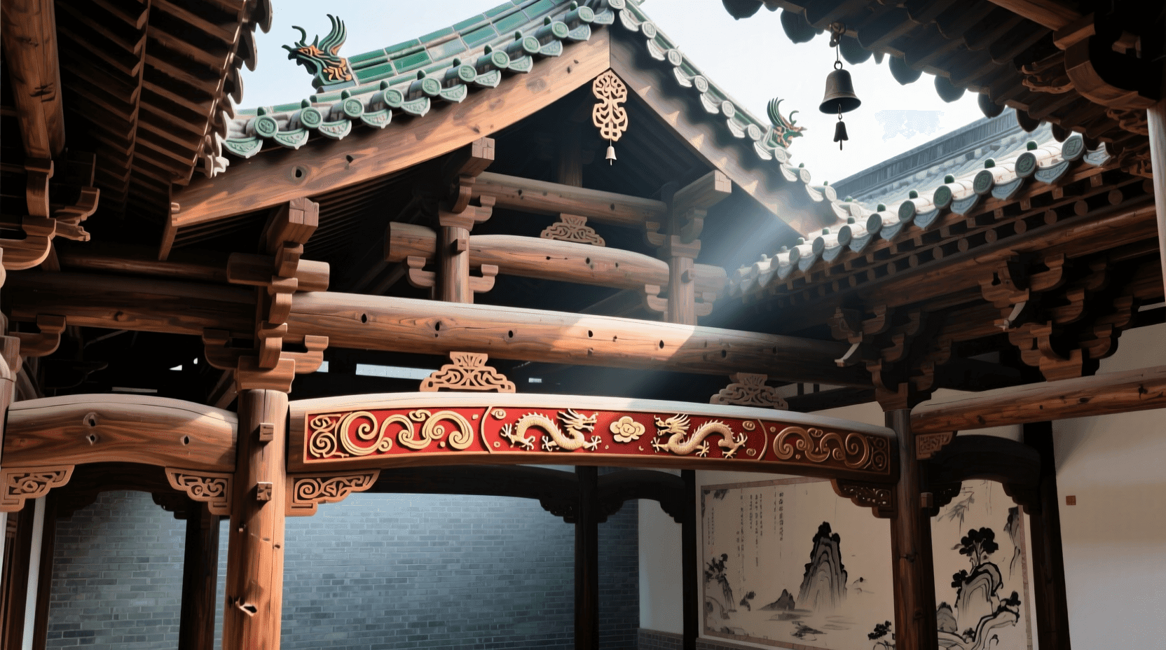 在传统中国木结构建筑中,梁架系统是室内空间最重要的视觉元素。主梁、次梁、檩条层层叠架,形成了复杂而有序的屋顶结构。这些构件不仅承担着屋顶的重量,其排列组合还体现了建筑的等级和功能。宫殿建筑的梁架彩绘华丽,民居建筑则保持木材本色,但都让结构成为了室内装饰的主体。