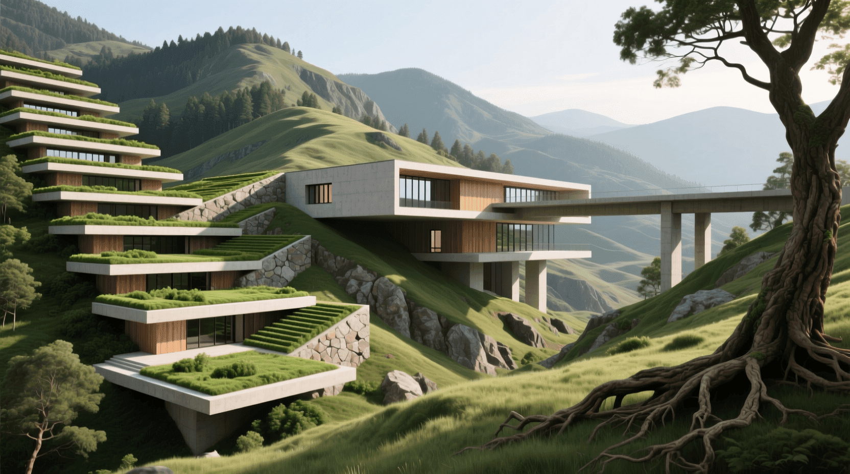 山地建筑设计的核心原则是“顺应地形、最小干预”。建筑应当像生长在山上的植物一样,与地形、地貌、生态环境和谐共生。