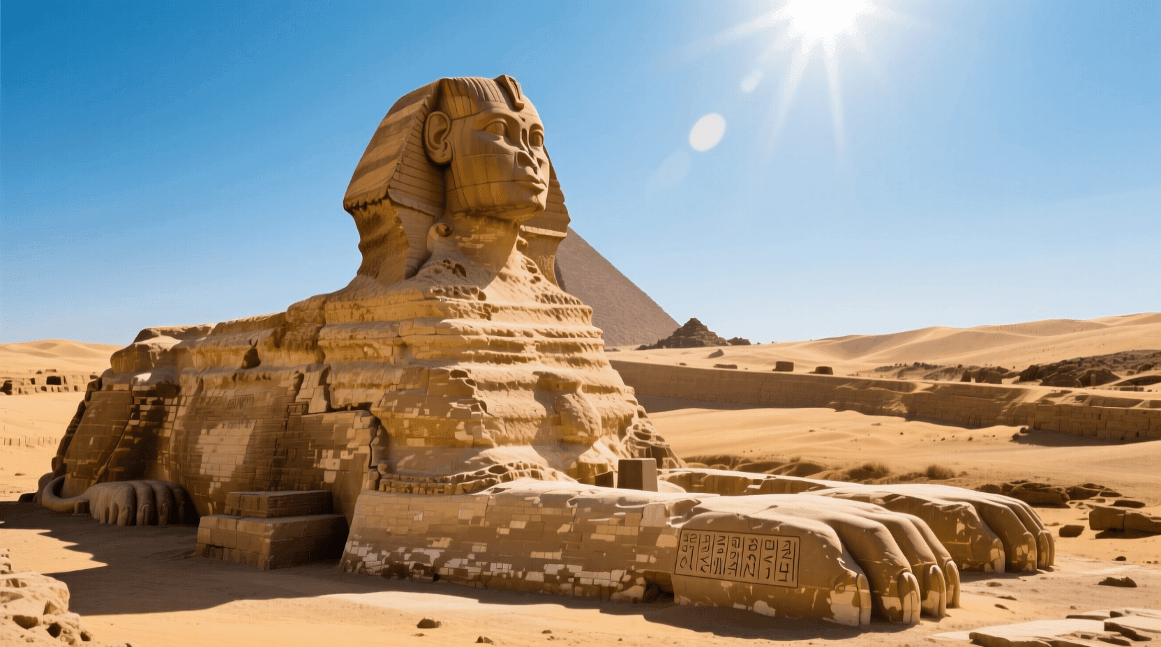 狮身人面像在埃及文化中有着深刻的象征意义。狮子代表力量和权威,而人面则被认为是法老卡夫拉本人的面容。这种人兽结合的形象体现了法老既是人间统治者又是神的化身的双重身份。古埃及人称它为“霍尔-埃姆-阿克特”,意思是“地平线上的荷鲁斯”,认为它守护着吉萨墓地,保护法老在来世的安宁。