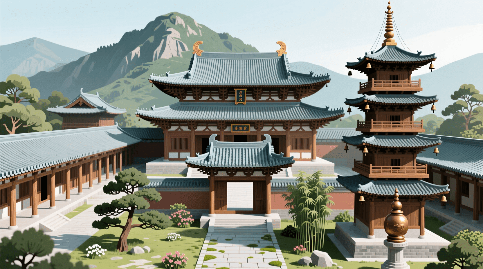 相比之下,中国寺庙采用的是院落递进的逻辑。从山门、天王殿、大雄宝殿到法堂,每进院落都是开敞的,建筑之间通过庭院连接。信徒可以直接走到大殿前瞻仰佛像(虽然不能进入神圣的殿内空间),空间的层次体现在纵深方向的延伸,而非垂直向度的包裹。两种空间逻辑反映出不同的宗教观念:印度教强调神的隔绝和遥不可及,中国佛教则强调渐进式的精神提升。