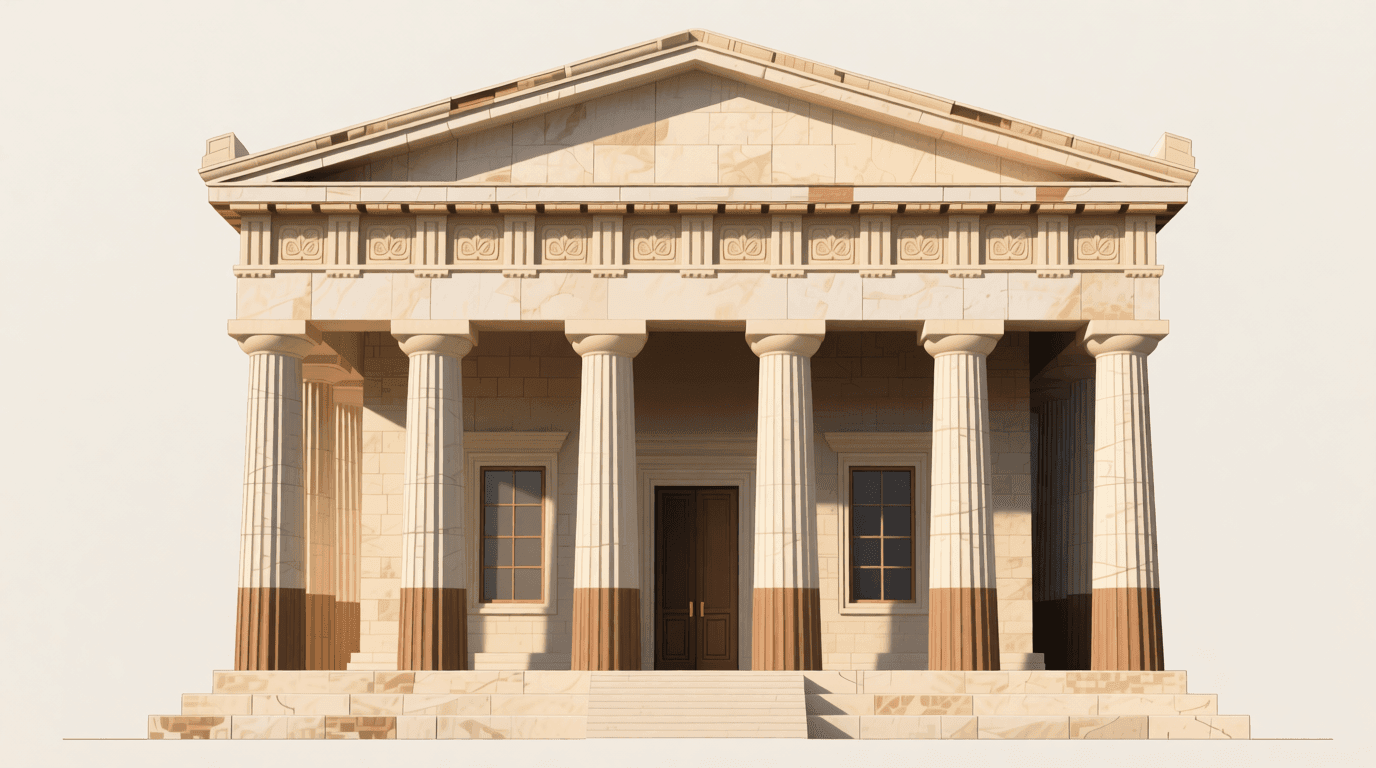 当建筑从简单的遮蔽需求发展为审美表达时,希腊工匠们开始思考一个问题:怎样让承重结构本身成为美的载体?答案就是柱式体系的诞生。这套体系将建筑的各个部分——从地面的台基、承重的柱子到顶部的横梁檐口——全部纳入一个统一的比例关系中,每个构件的尺寸都以柱子底部的直径为基准来确定。