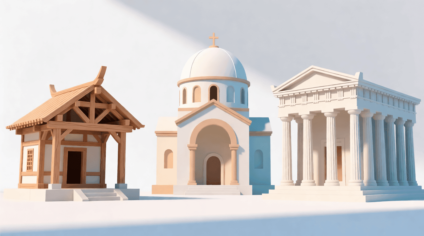 早期宗教建筑主要包括三种基本类型:用于集会的礼拜建筑、用于洗礼仪式的洗礼堂,以及用于纪念的陵墓建筑。每种类型都有其独特的空间形式和功能需求。