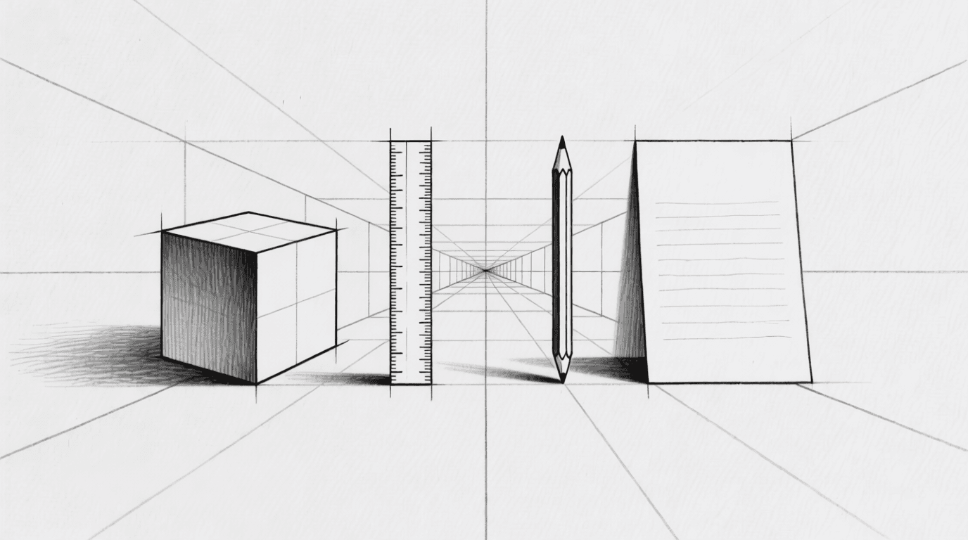 西方在15世纪发展出了基于几何学的透视作图法,可以精确地计算出任何物体在特定视点下的透视图像。这个方法的核心原理是:从观察者眼睛发出的视线,与一个假想的“画面平面”相交,交点就是物体在透视图上的位置。所有向远方延伸的平行线,在透视图上会汇聚于一个“消失点”。