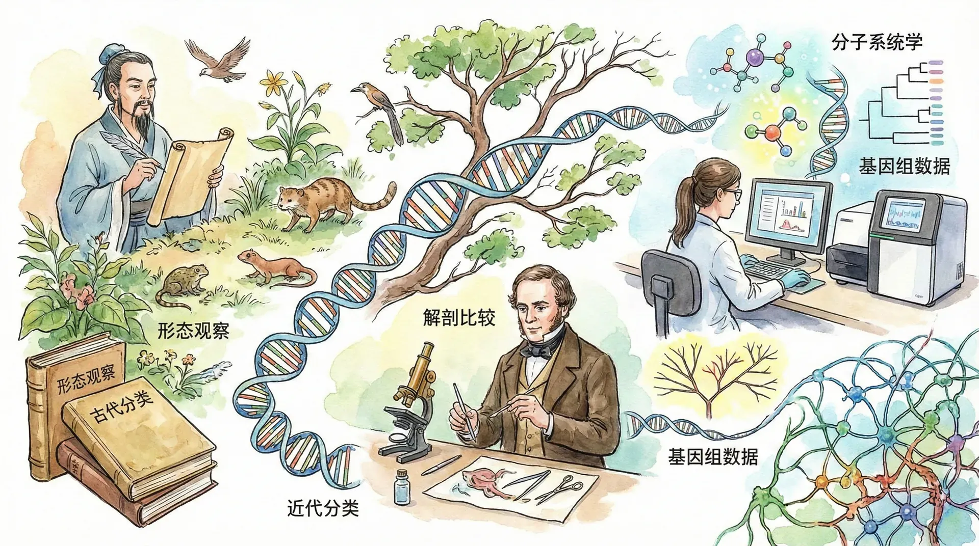 分类学家的工作类似于历史学家,他们通过研究生物的各种特征,重构生命进化的历史画卷,为每个物种在生命之树上找到准确的位置。