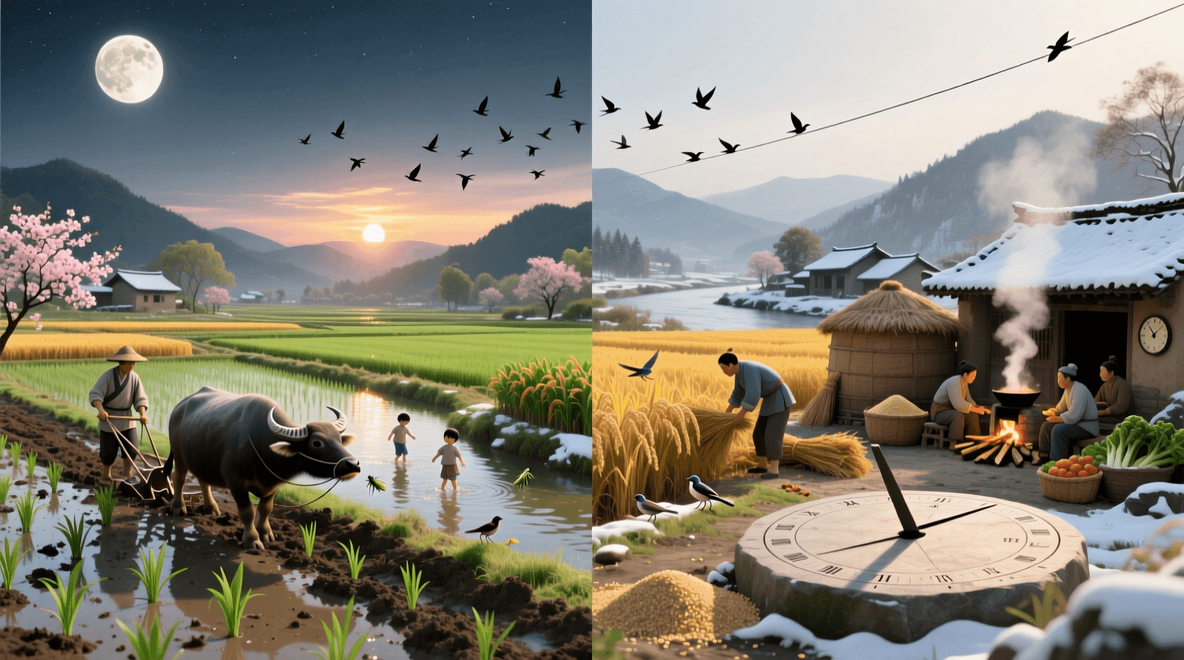 中国传统文化虽有“沧海桑田”等成语来表达巨大的时间变化,但整体看,古代社会的时间观更强调周期性和循环性,注重四时更替、物候循环与自然律动,而较少关注事件的长远线性推进。比如“阴阳消长”“春种秋收”,反映的是即兴循环,不是不可逆的历史演进。