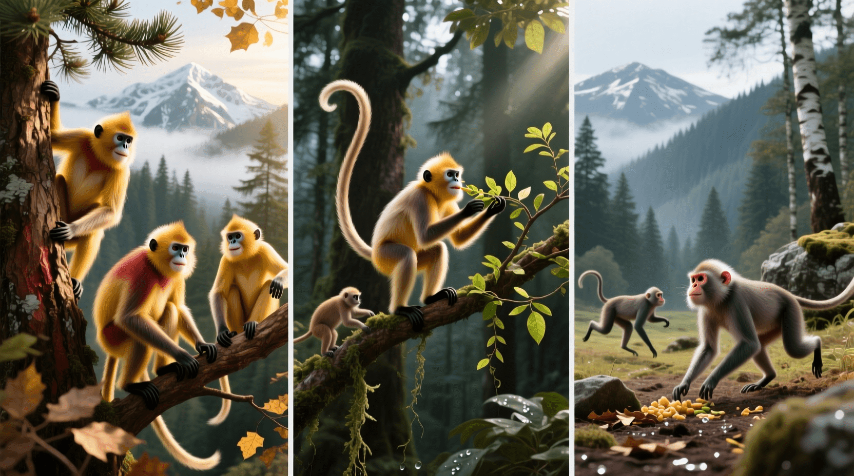 中国灵长类动物主要可分为三大类群:金丝猴类群、叶猴类群和猕猴类群。下表总结了它们在地理分布和形态特征得分上的差异,以及代表物种: