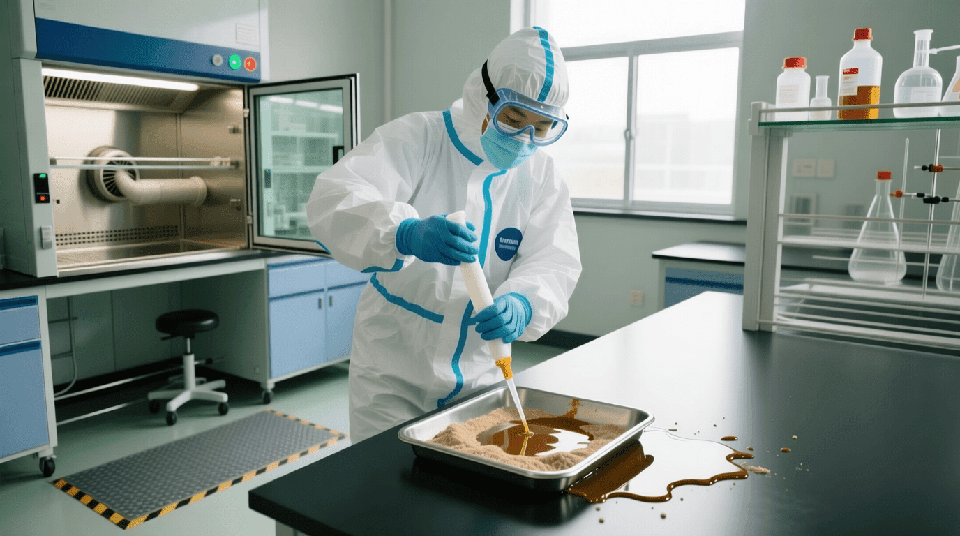 某些化学品的泄漏会产生有毒气体,处理时要特别谨慎。例如,浓盐酸和浓氨水泄漏会产生刺激性气体,硫化物与酸接触会产生硫化氢气体,氰化物与酸反应会释放剧毒的氰化氢气体。这类泄漏必须在确保充分通风的情况下处理,必要时佩戴防毒面具。如果泄漏发生在通风橱内,应立即关闭橱门,保持通风橱运转,让有毒气体通过管道排出。在中国疾控中心的实验室安全手册中,明确规定对于产生有毒气体的泄漏,普通实验人员不得擅自处理,应由经过专业培训的安全员或消防人员处理。