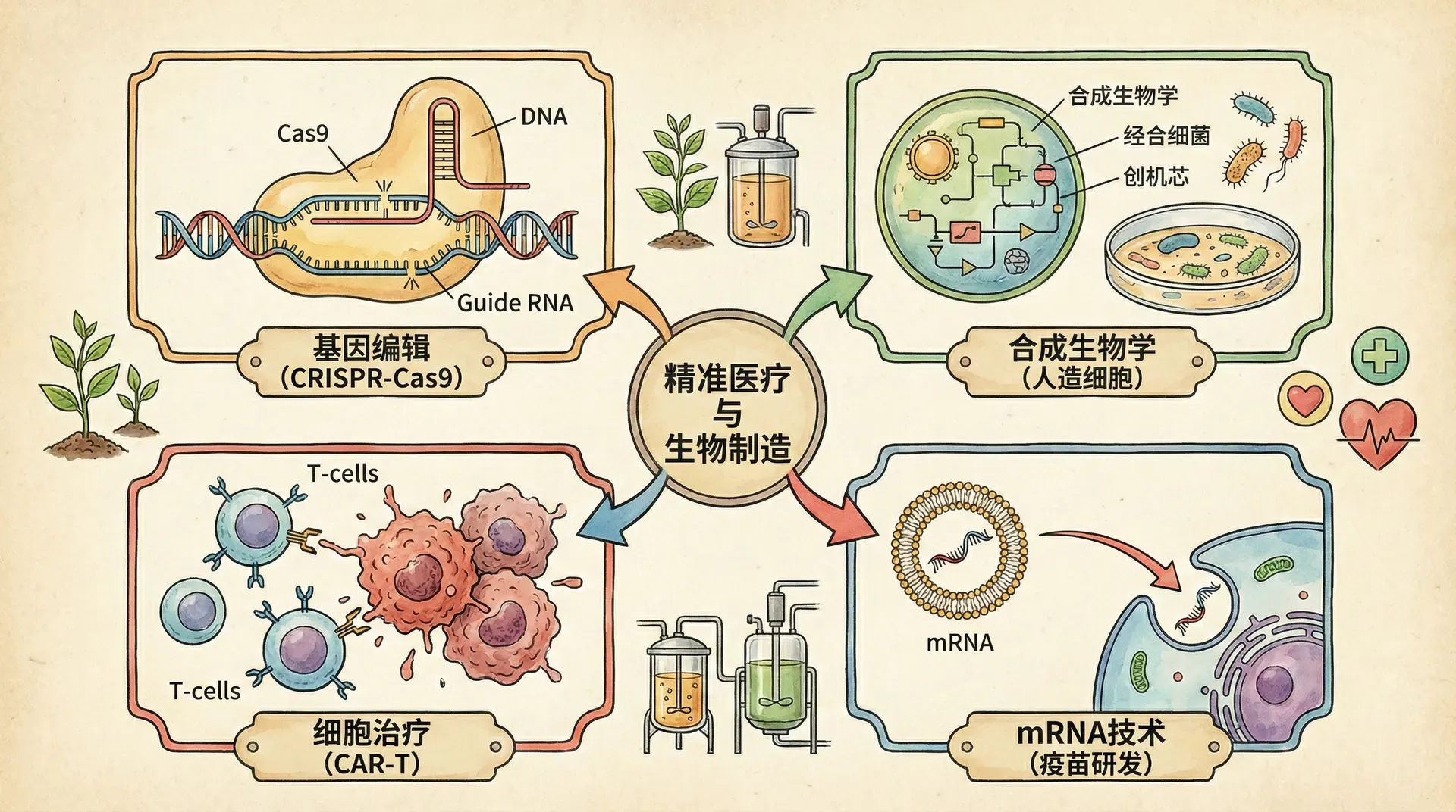 近年来,现代生物技术正以爆炸式的速度推动着医学和人类健康领域发生深刻变革。从21世纪初基因组测序、蛋白质工程到CRISPR基因编辑、干细胞定向分化、合成生物学等前沿领域的持续突破,生物技术呈现出多学科深度融合、技术门槛快速提升的趋势。这些创新技术不仅为疾病诊断和个体化治疗提供了强有力的工具,还在药物研发、疫苗设计、罕见病攻克及慢性疾病管理等方面拓展出前所未有的新路径。