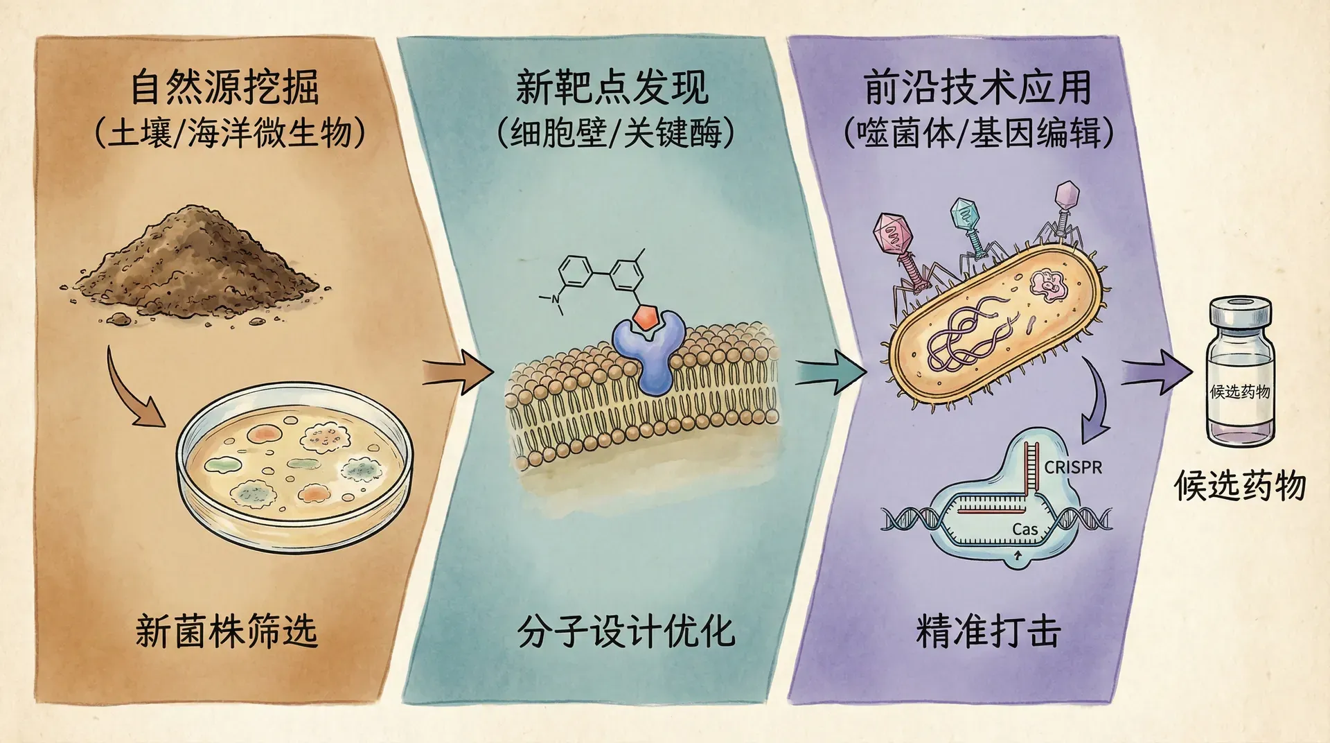 该方法不仅丰富了抗生素“资源库”,还可能绕开现有耐药机制,是未来抗生素创新研发的重要方向之一。此外,合成生物技术、小分子优化、结构修饰与高通量药筛等也为新药开发提供更多思路。