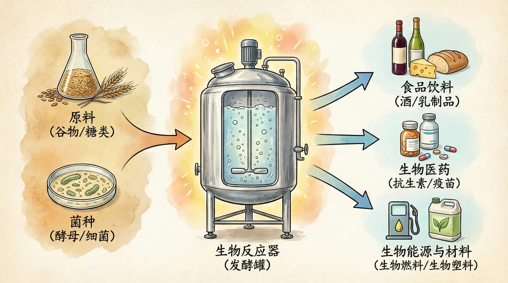 现代生物技术的发展大大推动了食品工业的进步,既优化了传统工艺,也催生了许多全新产品和生产方式。以下分别从工业发酵、氨基酸与维生素生产及酶工程等方面,对其在食品工业中的典型应用进行扩展介绍。