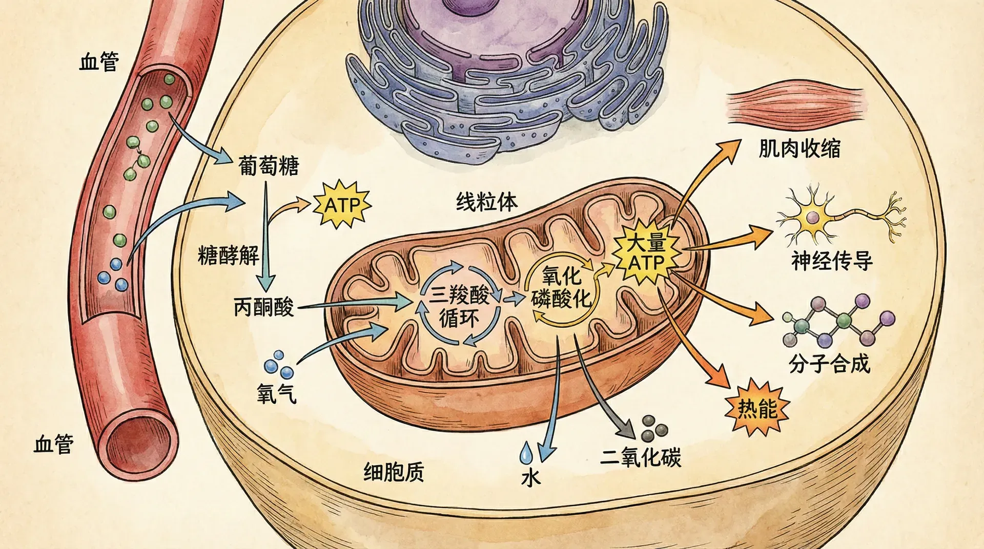 其中,葡萄糖经糖酵解生成丙酮酸,进入三羧酸循环(TCA循环)以及呼吸链进行彻底氧化,每分子葡萄糖理论上可产生38分子ATP(真核细胞内实际产量略低)。高效的能源转化支持了微生物的快速生长和高密度繁殖。