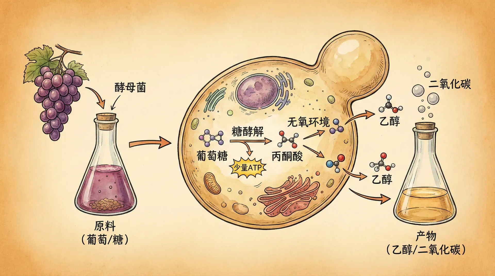 酒精发酵的核心是微生物,尤其是以酿酒酵母为代表的酵母菌。其基本原理是通过酵母菌在厌氧条件下,将原料中的糖类分解为乙醇(酒精)和二氧化碳,同时释放出一定量的能量。在发酵过程中,酵母菌的种类、菌种的活性、发酵温度、pH值、原料类型及营养条件等,都会对酒精产量和最终风味产生显著影响。