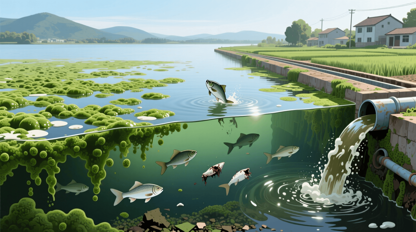 正反馈不仅局限于单一物种种群,在更大尺度的生态系统中,同样有“级联反应”。一个显著例子就是湖泊富营养化的灾难性转变。