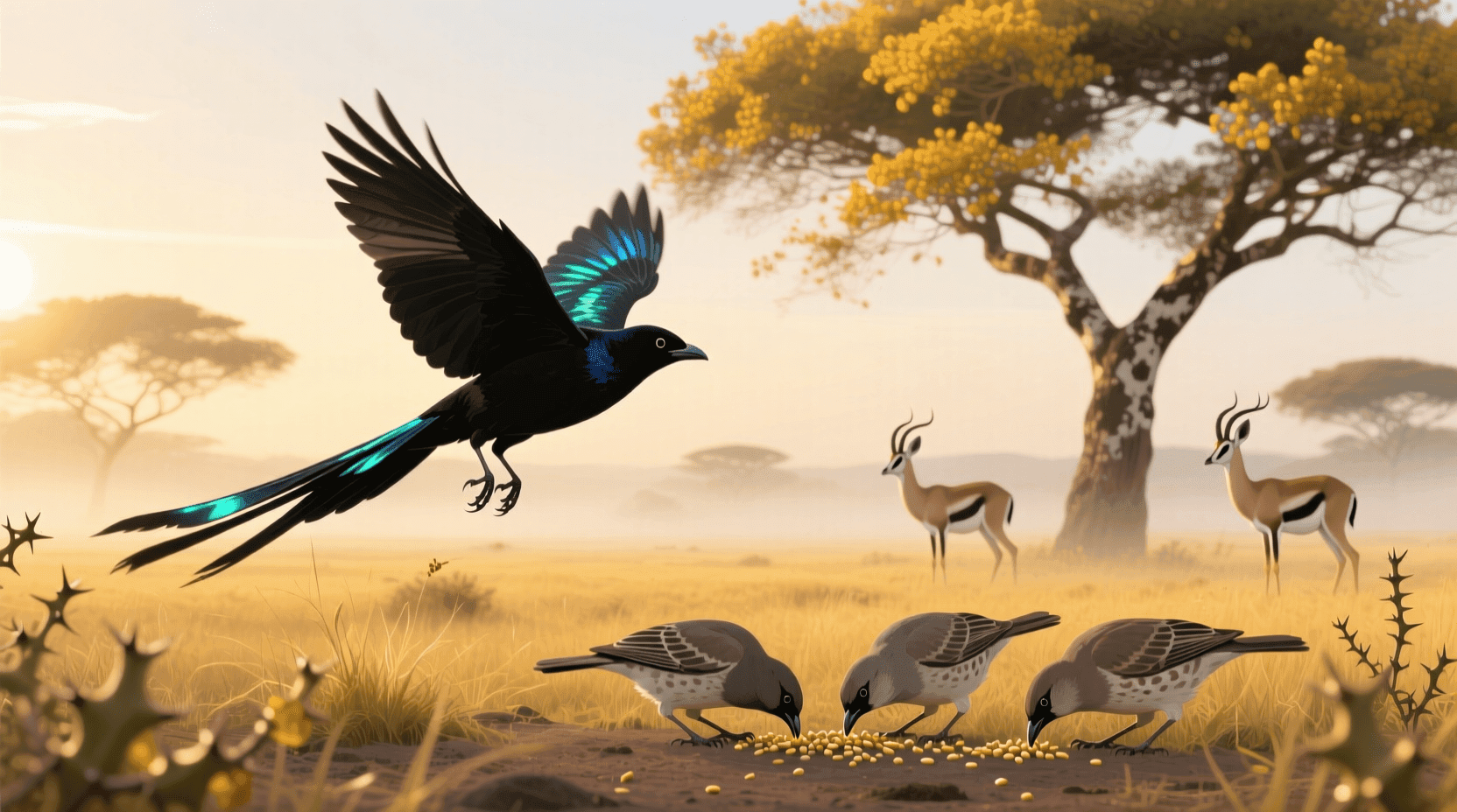 寡妇鸟是非洲热带稀树草原常见的鸟类。雄性尾羽极为修长,远远超出生存所必需的程度。在安德森的著名实验中,他将捕捉到的雄性寡妇鸟分为三组: