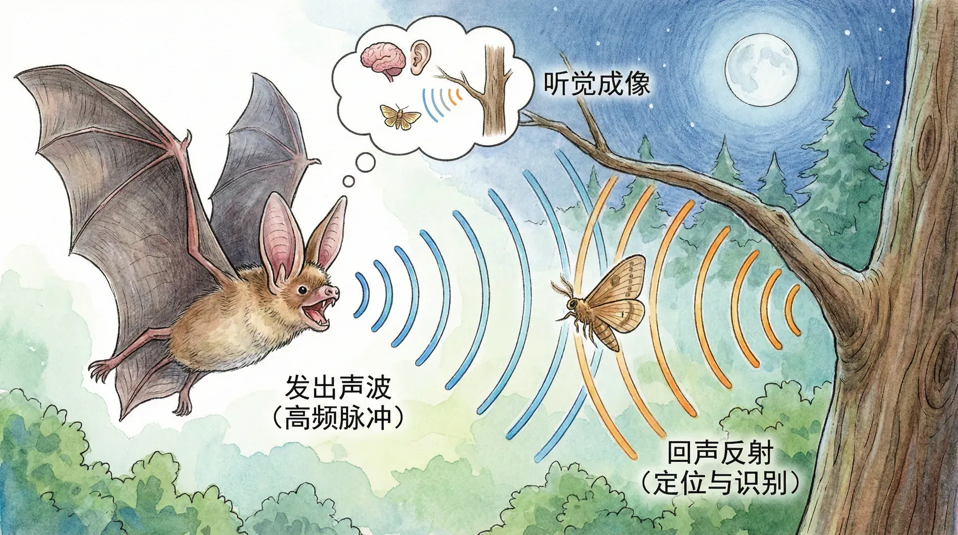 从历史、战争到现代科技,人类通过“回声定位”的原理——即利用声波遇到障碍物发生反射的方式——不断打破感官的局限。自然界早已在数千万年前通过生物进化实现了同样甚至更复杂的“声波雷达”。