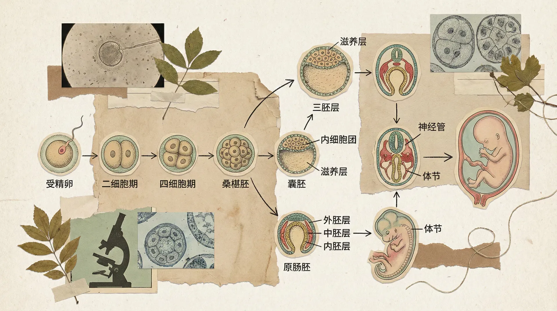 深入研究显示,无论多么复杂的动物,其生命起点都是一个单细胞(受精卵)。受精卵经历持续分裂,成为由许多小细胞组成的胚泡。随后,胚泡中的细胞出现空间分化,形成三大“胚层”,为各类器官的发育奠定基础: