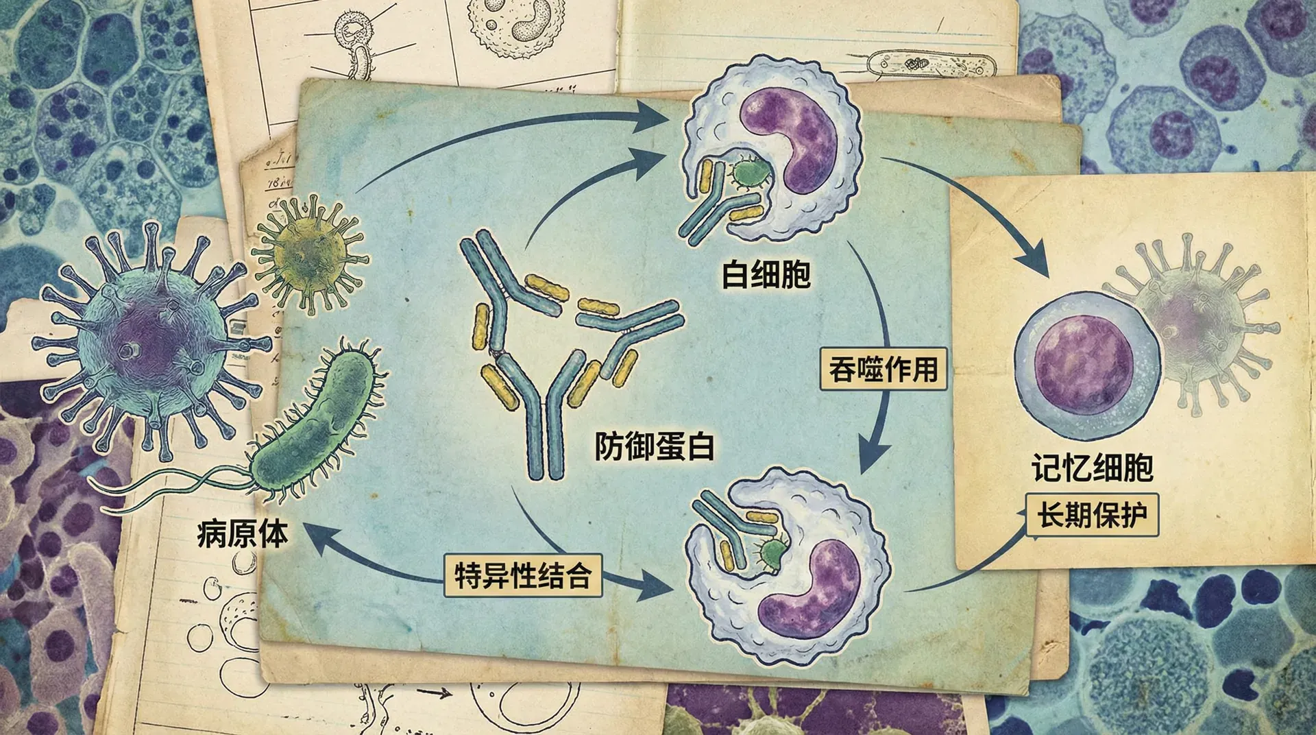 激素只是血液承载的功能之一,血液中还流动着身体的防御系统。十九世纪末,科学家发现当动物接触到特定的病原体后,它的血液中会产生一种能够对抗该病原体的物质,这种物质就是抗体。