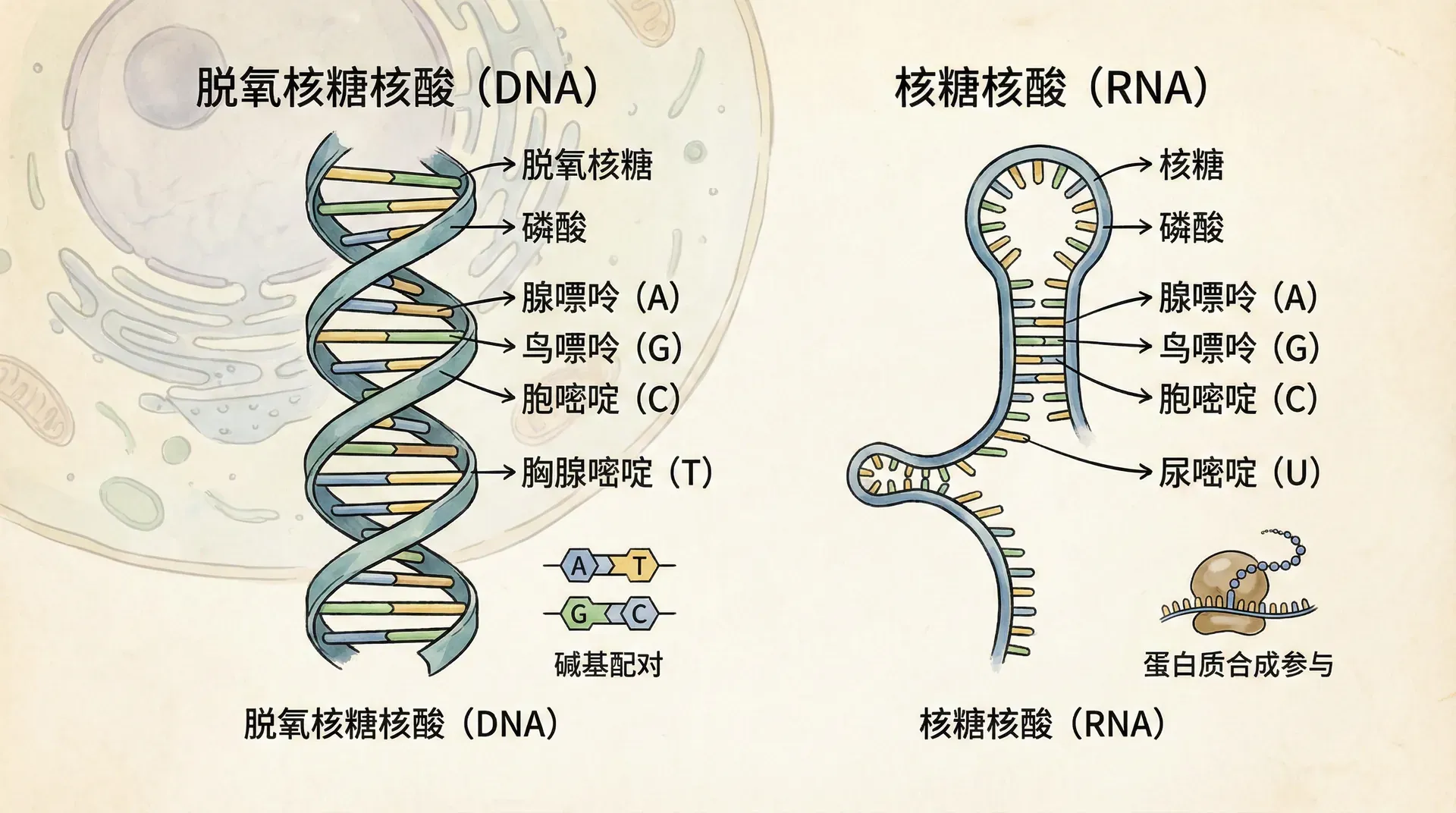 两种类型的核酸——脱氧核糖核酸(DNA)和核糖核酸(RNA)——使生物体能够将其复杂组分从一代复制到下一代。在分子中,DNA独特地提供其自身复制的指令。DNA还指导RNA合成,并通过RNA控制蛋白质合成;这整个过程称为基因表达。