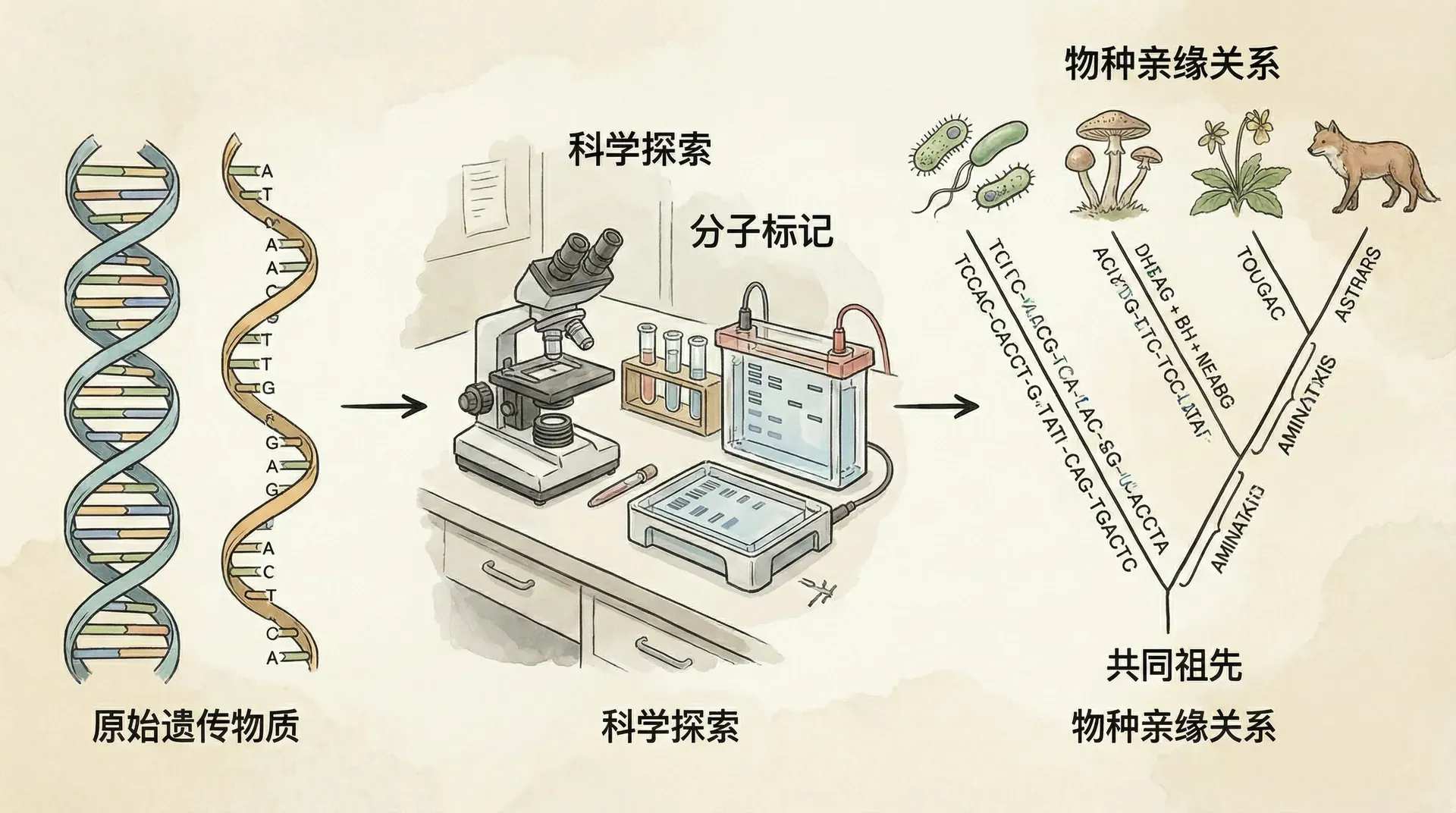 现代分子生物学技术让我们能够直接比较不同生物的DNA序列。研究发现,亲缘关系越近的生物,它们的DNA序列越相似。比如人类与黑猩猩的DNA相似度高达98.8%,而人类与大肠杆菌的相似度只有约7%。
