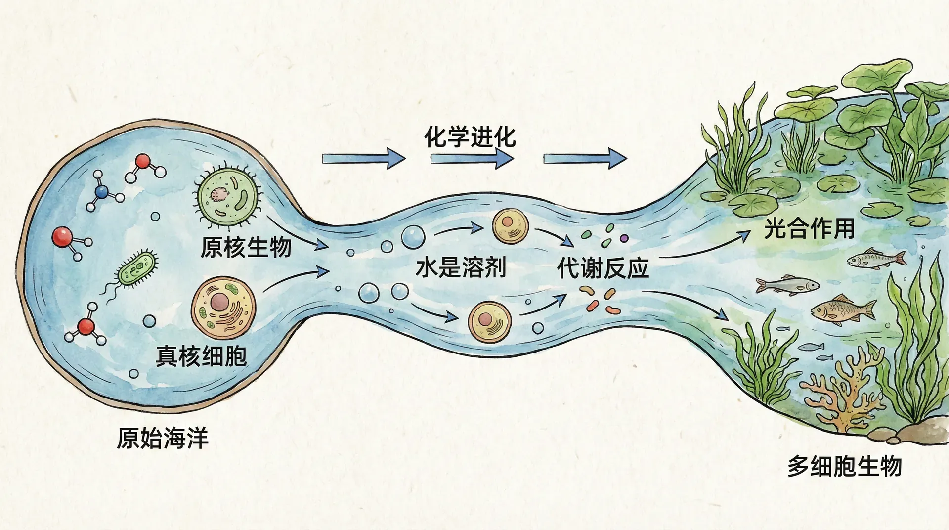 地球上的生命起源于水中,在那里演化了三十多亿年才逐渐登陆。水是我们所知道的地球生命存在的基础,也可能是其他星球生命存在的关键。我们熟悉的所有生物主要由水构成,并且生活在水占主导地位的环境中。