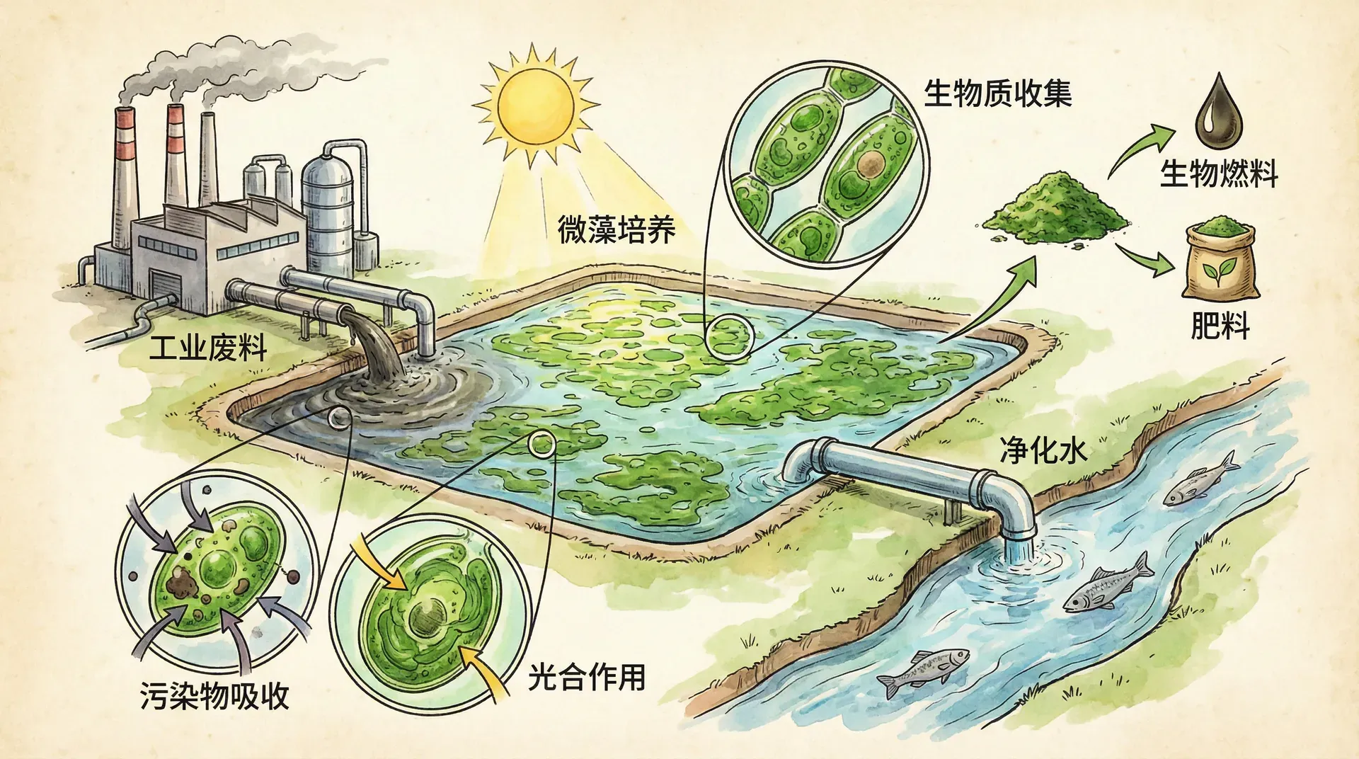 藻类作为地球上最古老且广泛分布的光合生物之一,正在逐渐成为应对现代环境污染与能源危机的新兴关键技术。这些微小但功能强大的生物体,能够高效吸收并转化多种工业废料中的有害成分,如有机物、氮、磷以及重金属,不仅显著降低了环境污染,还具备将部分废弃物转化为生物能源(如生物柴油、生物甲烷等)的独特能力,实现了废弃物处理和能源生产的协同效益。