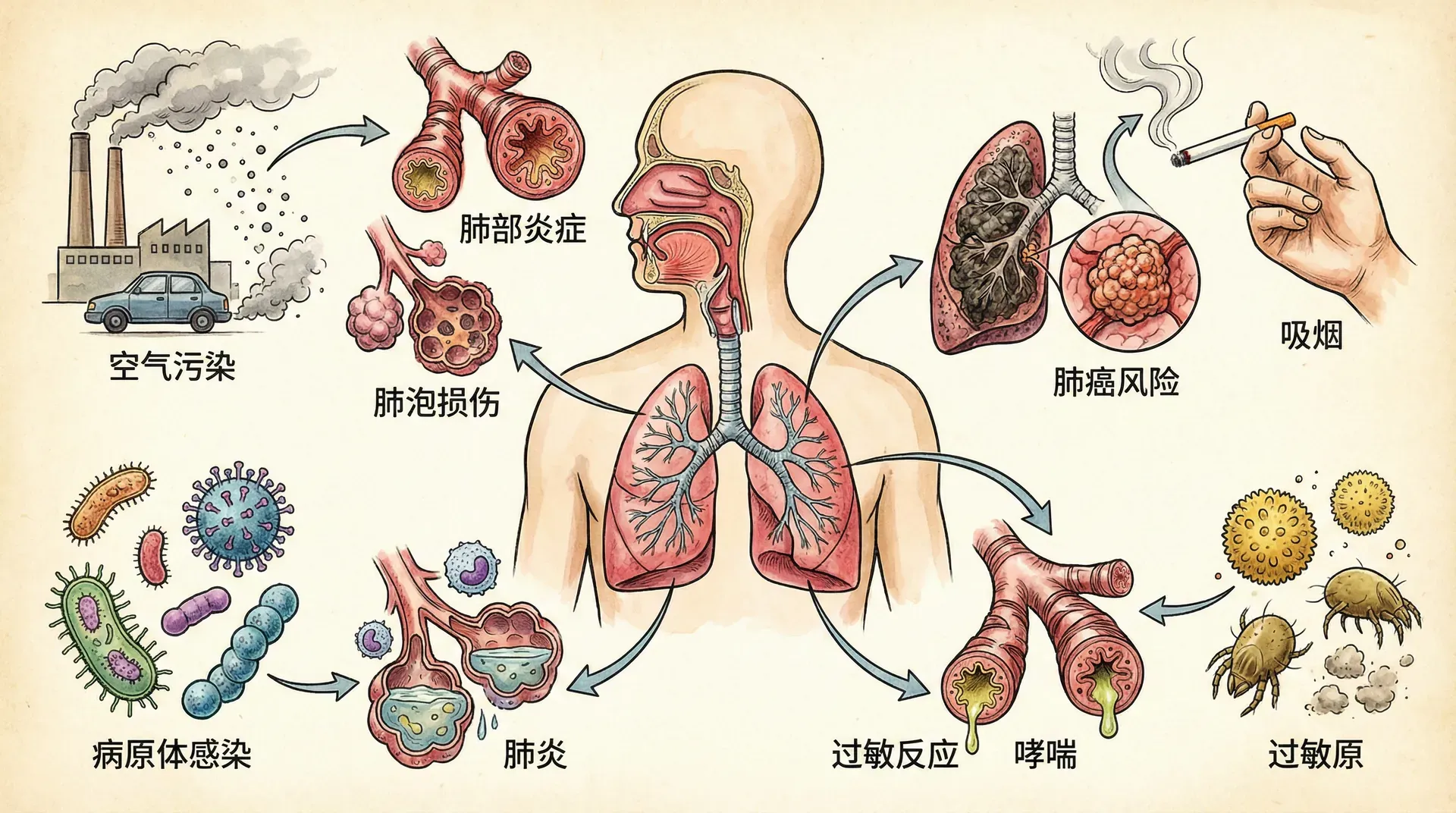 风沙对健康的影响不仅仅来自于颗粒物的物理刺激,更重要的是其携带的微生物和化学物质。近年来,我国多项流行病学研究揭示了沙尘天气与呼吸系统疾病之间的密切关系。