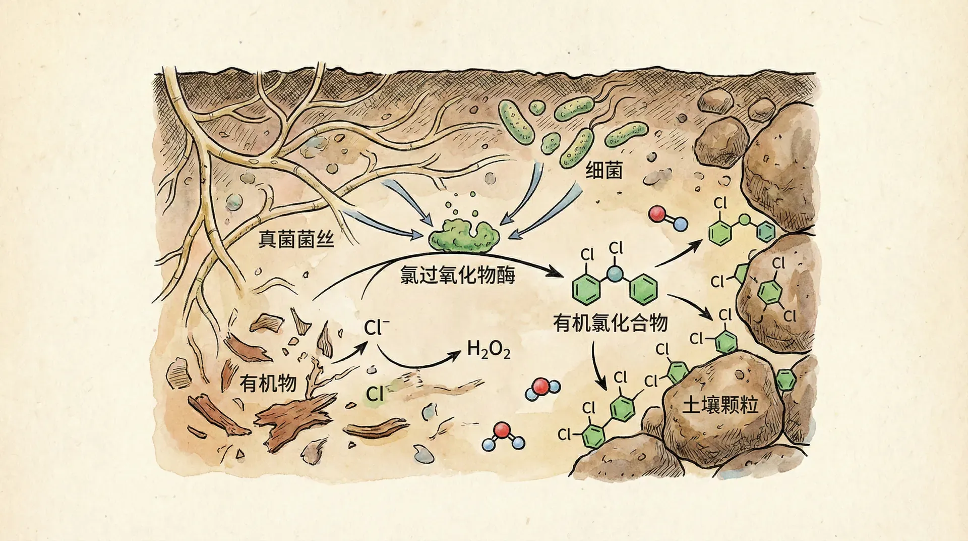 在华北平原农田的相关研究发现,土壤中的链霉菌属(Streptomyces)和假单胞菌属(Pseudomonas)等微生物可以分泌氯过氧化物酶,这种酶能够催化氯离子与多酚类、酚酸、羧酸等有机底物结合,形成稳定的有机氯键。这既是土壤有机物形成和演替的重要动力,也影响氯在土壤中的留存和生物可利用性。