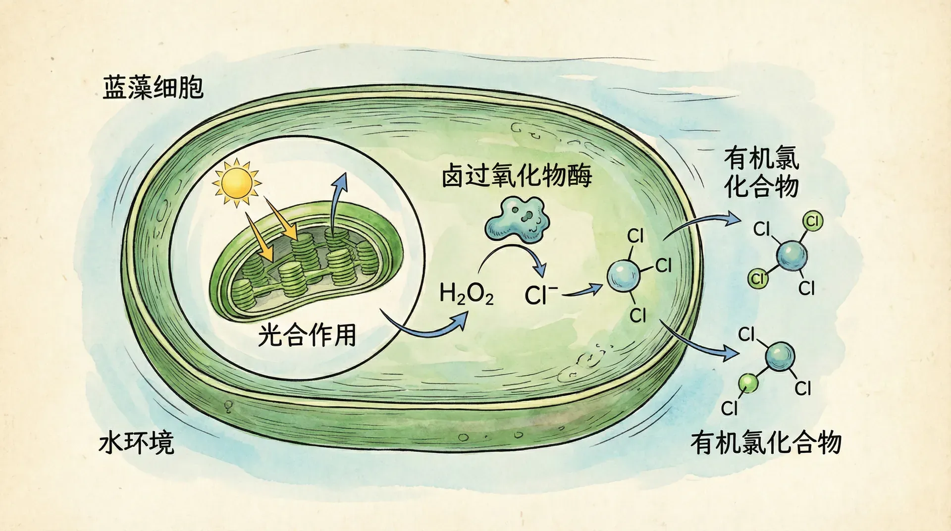 在太湖,氯化合物的产生与蓝藻的生长动态和湖水温度高度相关。夏季高温期,蓝藻密集繁殖,是氯化合物的产生高峰。除此之外,风浪扰动、湖区富营养化和污染输入都会直接或间接推动氯化合物释放。