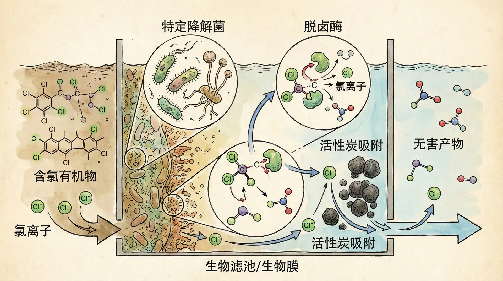 近年来,生物活性炭滤池(BAC)、**高级氧化工艺(AOPs,如臭氧-过氧化氢联合氧化、光催化氧化等)**等前沿技术也逐步进入大型水厂示范应用,为氯化合物深度控制提供了更多选择。