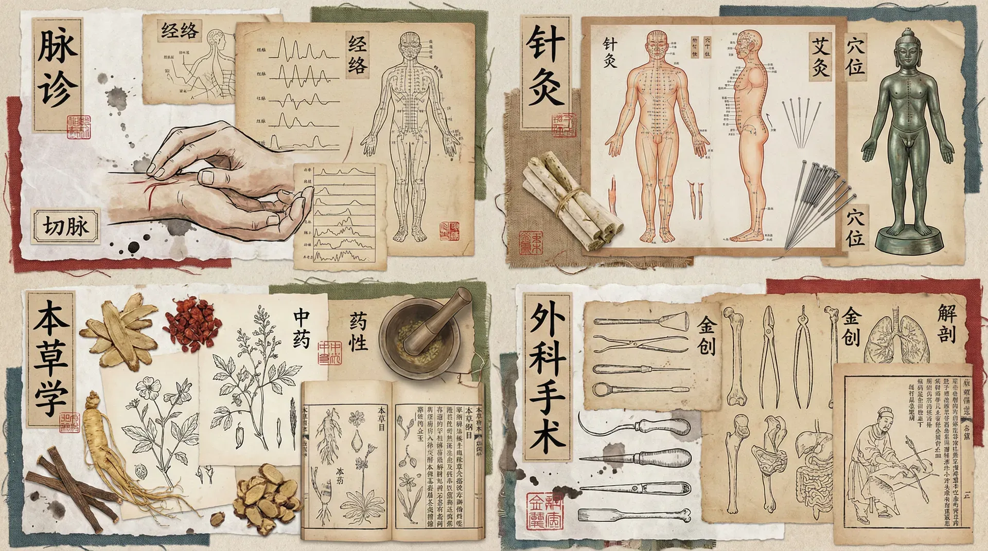 骨伤科方面,宋代已形成系统理论,如《正骨心法要旨》《正骨秘诀》。少林寺跌打药、民间金疮药、膏剂、粉剂流传千年,至今在中医外伤治疗中占据一席之地。中医外科典型技术如下: