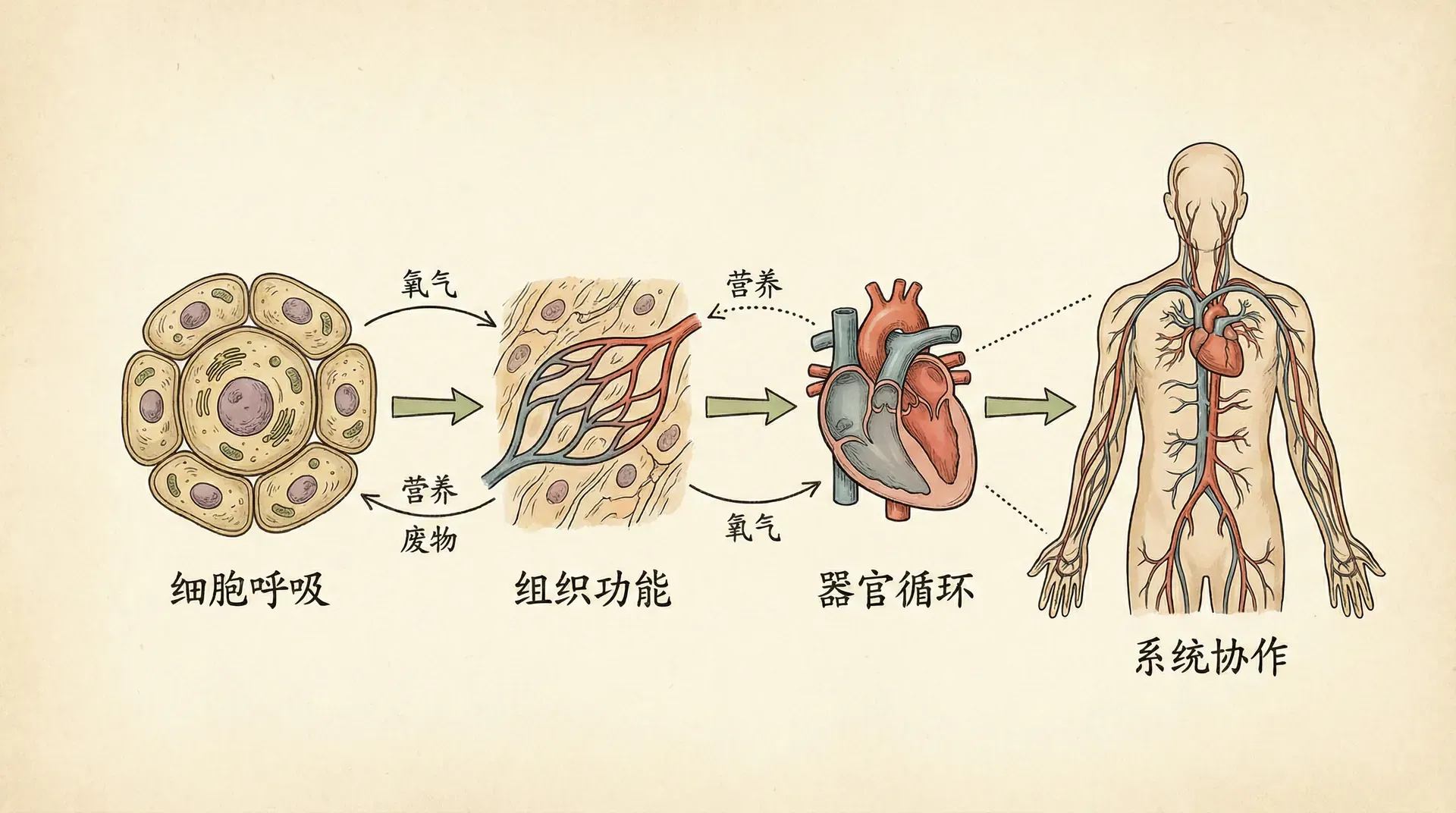从微观的分子和细胞层次,我们现在把视角放大到器官和个体层次。在这个层次上,各种生理过程协调运作,共同维持着生物体的生命。
